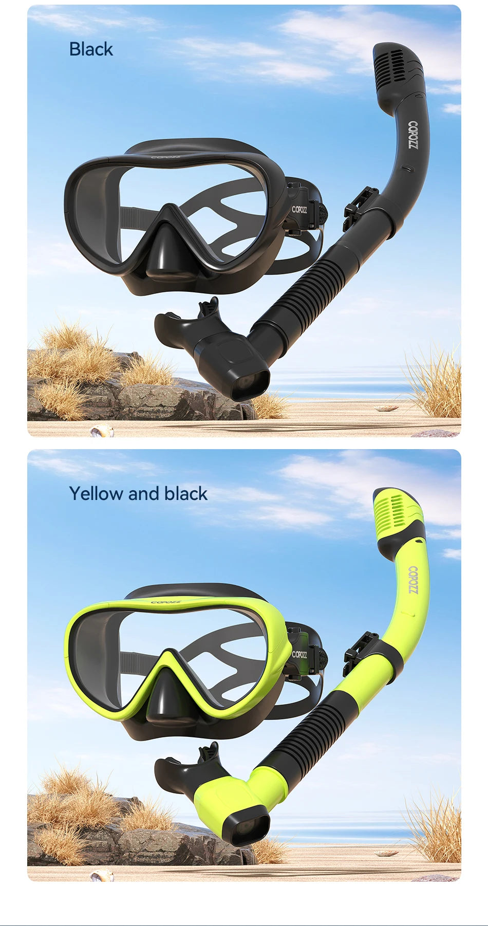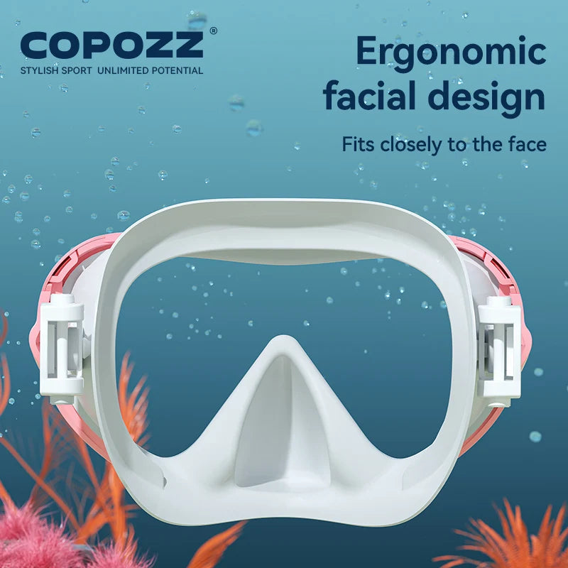 COPOZZ Professional Diving Mask Full Vision Mask Underwater Snorkel Mask Set Swimming Snorkel HD Anti Fog Diving Equipment