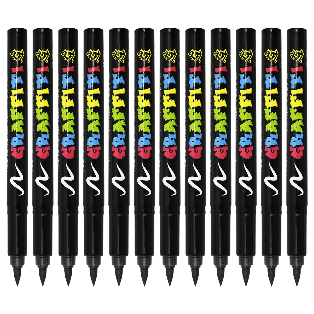Acrylic Paint Pens, Soft Brush Tip Acrylic Paint Markers, Acrylic Markers Ideal for Canvas, Stone, Glass, Ceramic(12 Pcs Black)