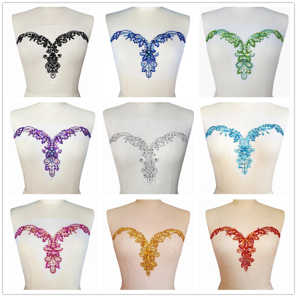 BLING Crystal Beaded Sew on 20x34cm Rhinestone Bridal Applique Patches Diy Sewing Accessories For Wedding Dress Decoration Stras