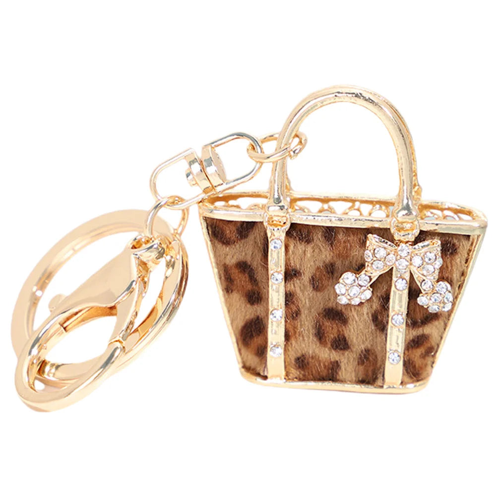 Bling Leopard Print Rhinestone Keychain Unique Car Accessories Women Crystal Charm Wallet Decorative Bag Key Chains Handbag