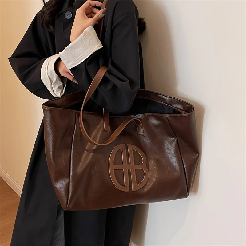 Chic Large Capacity Women's Tote Bag - Casual Vintage Soft Faux Leather, Versatile Solid Color Shoulder Handbag with Zip Closure