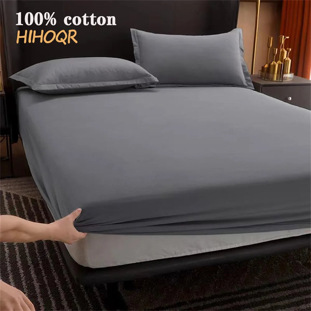 100% Cotton Fitted Sheet with Elastic Bands Non Slip Adjustable Mattress Covers for Single Double King Queen Bed,140/160/200cm