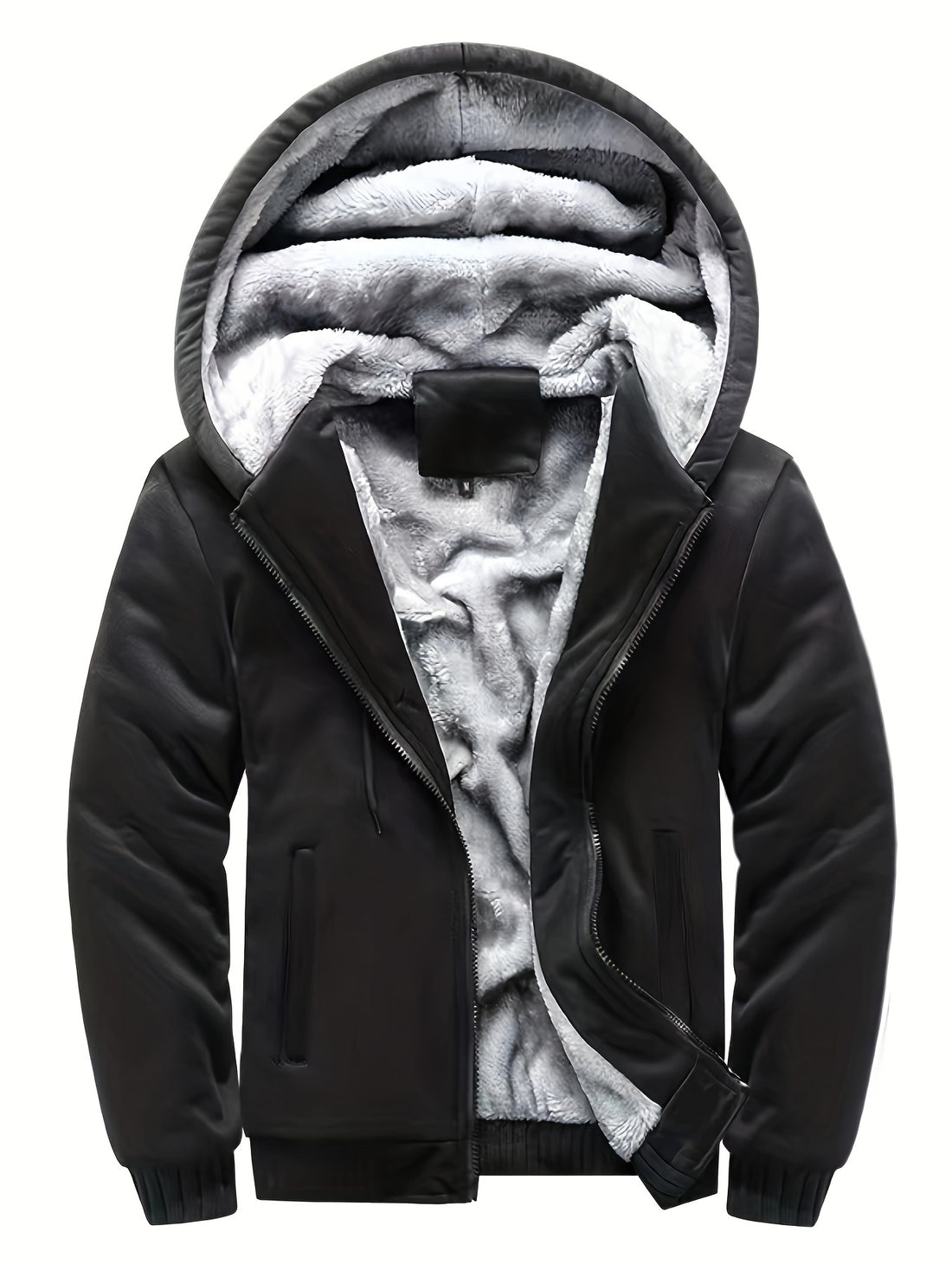 Men'S Winter Thick And Padded Warm Zip Up Hooded Jacket