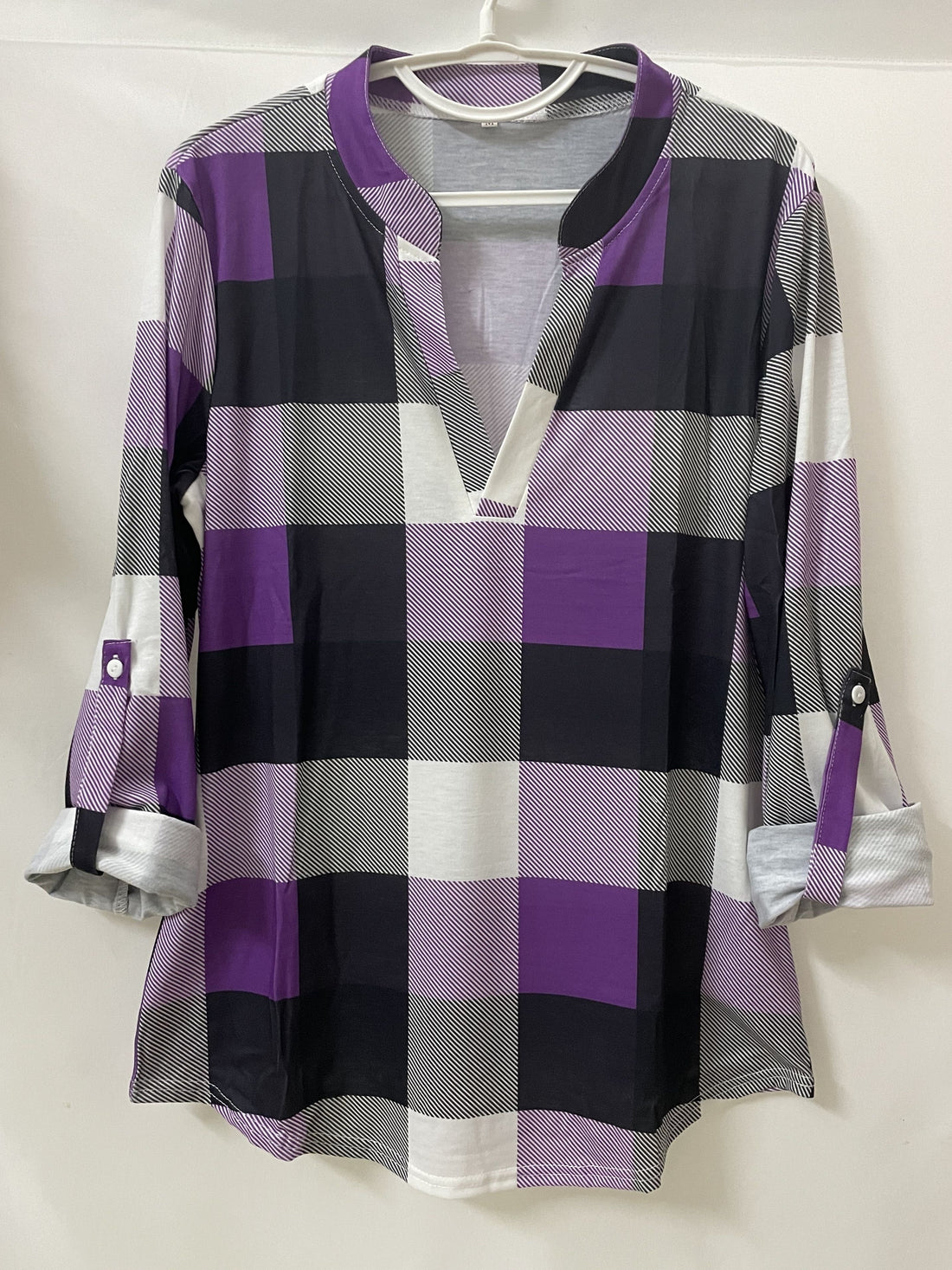 [Casual Plaid Long Sleeve Shirt] Casual Plaid Shirt, Long Sleeve V-neck Shirt, Casual Every Day Tops, Women's Clothing