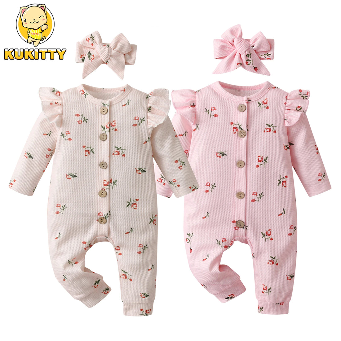 Casual Newborn Infant Baby Girl Romper Clothes Spring Autumn Long Sleeve Jumpsuit Playsuit Come with Headband Clothing for Girls