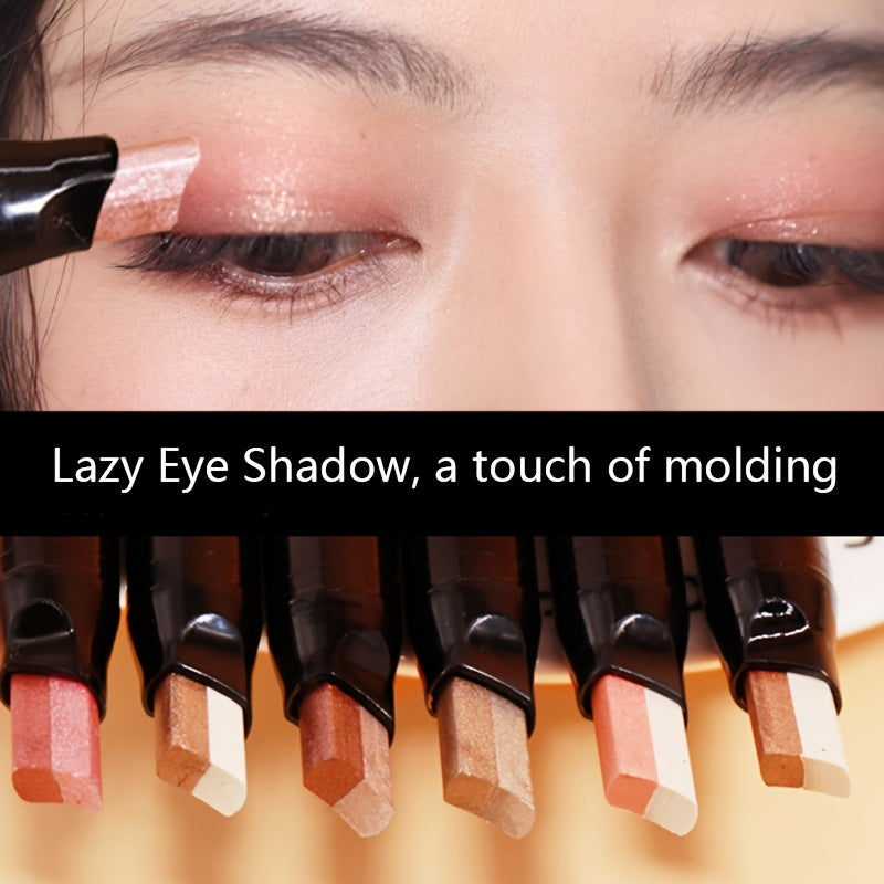 Gradient Two Tone Eyeshadow Stick, Eye Brightening Pearly & Glitter Earth Brown Color Tone, Smudge Proof Lazy Eyeshadow Stick Contains Plant Squalane Formula