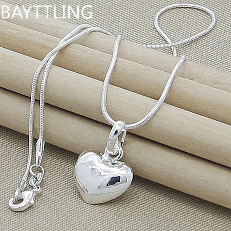Fine 925 Sterling Silver Solid Heart Necklace 18-24 Inches Snake Chain For Women Wedding Charm Fashion Jewelry luxury