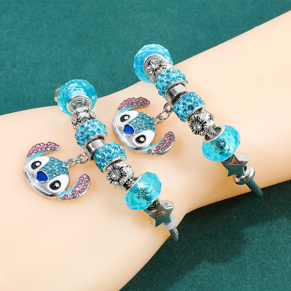 Disney Stitch Cartoon Rhinestone Bracelet Set Cute Fashion Accessories for Women And Girls Ideal Gift for Fans Birthday
