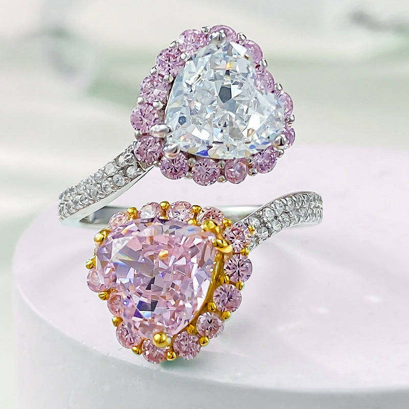 Elegant S925 Silvery and moissanite Rings - Vintage Style, Ideal for Birthdays, Valentine'S Day, and Engagements, Featuring Sparkling Pink and Clear Faux Gemstones, Perfect for Couples or Individuals, Valentine Jewelry|Vintag