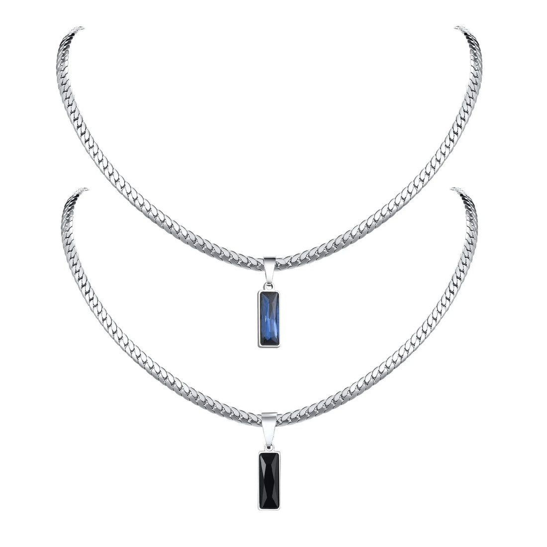 Vnox Stylish Square Stone Pendent Necklaces for Men, Stainless Steel Flat Cuban Chain Collars, Hip Hop Jewelry Gift for Him Boys