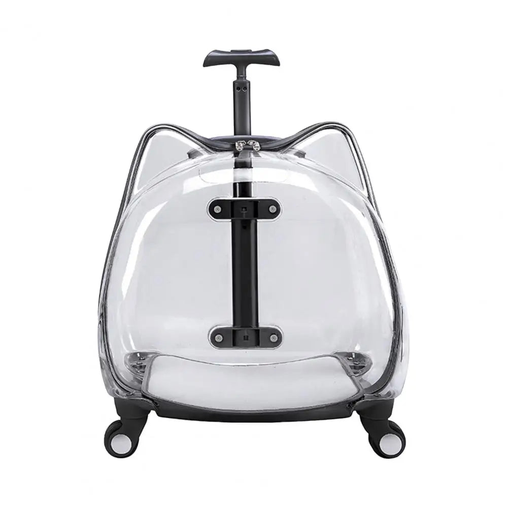 Cat Carrier with Wheels Transparent Pet Trolley Case Telescopic Rod Spacious Breathable Pet Trolley for Hiking Travel