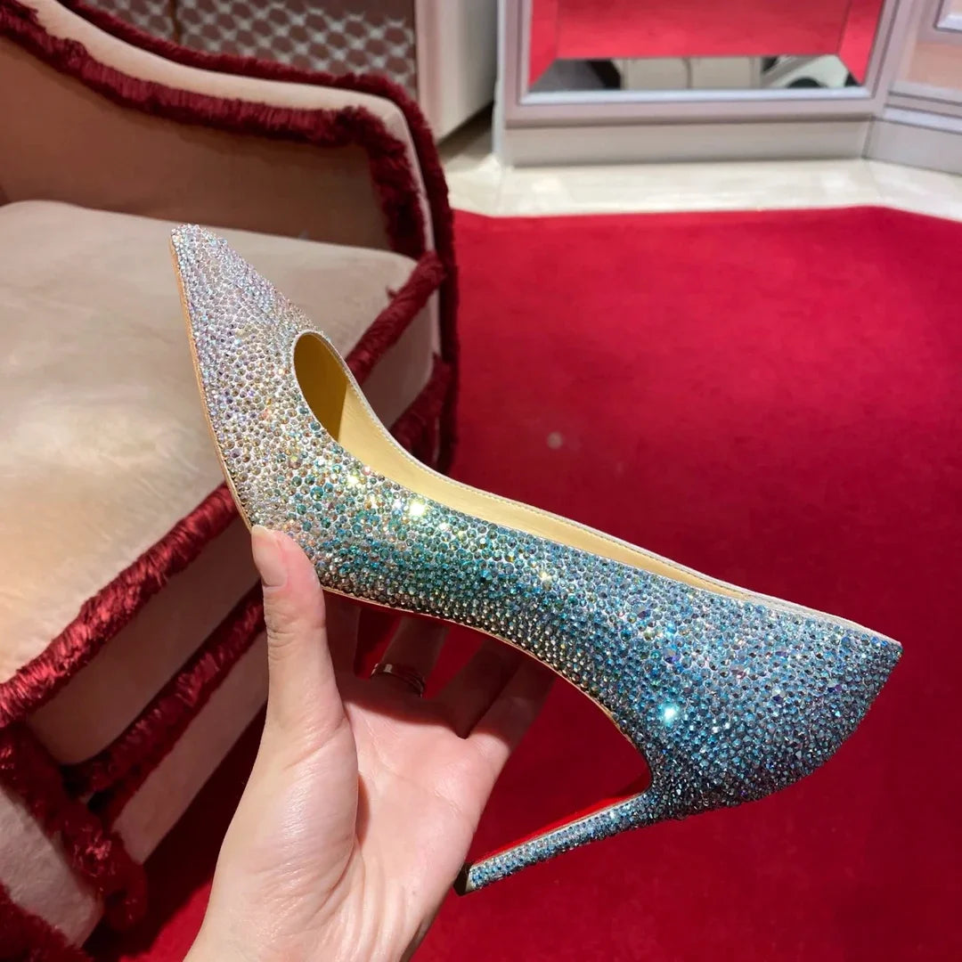 Bling Bling Crystal High Heels Woman Shoes Purple Glittering Wedding Shoes Bride Pointed Toe Shallow Rhinestone Banquet Pumps