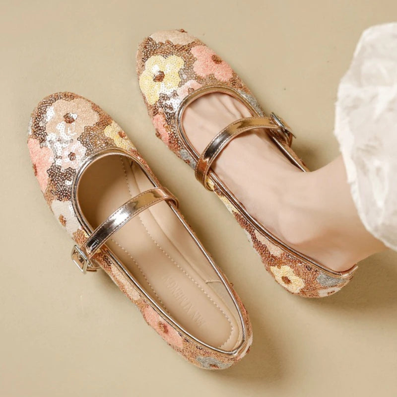 Luxury Bling Ballet Flats Women Round Toe Colorful Floral Buckle Design Mary Jane Shoes Elegant Party Shoes Comfort Flat Sandals