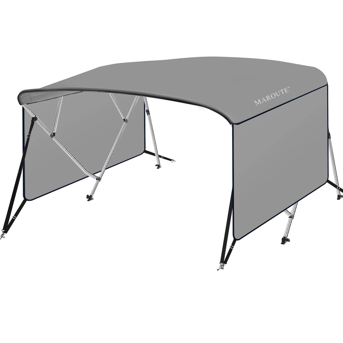Top Boat Cover with Aluminum Alloy Frame 600D Marine Grade Fabric Adjustable Rear Support Poles Zippered Storage Boot