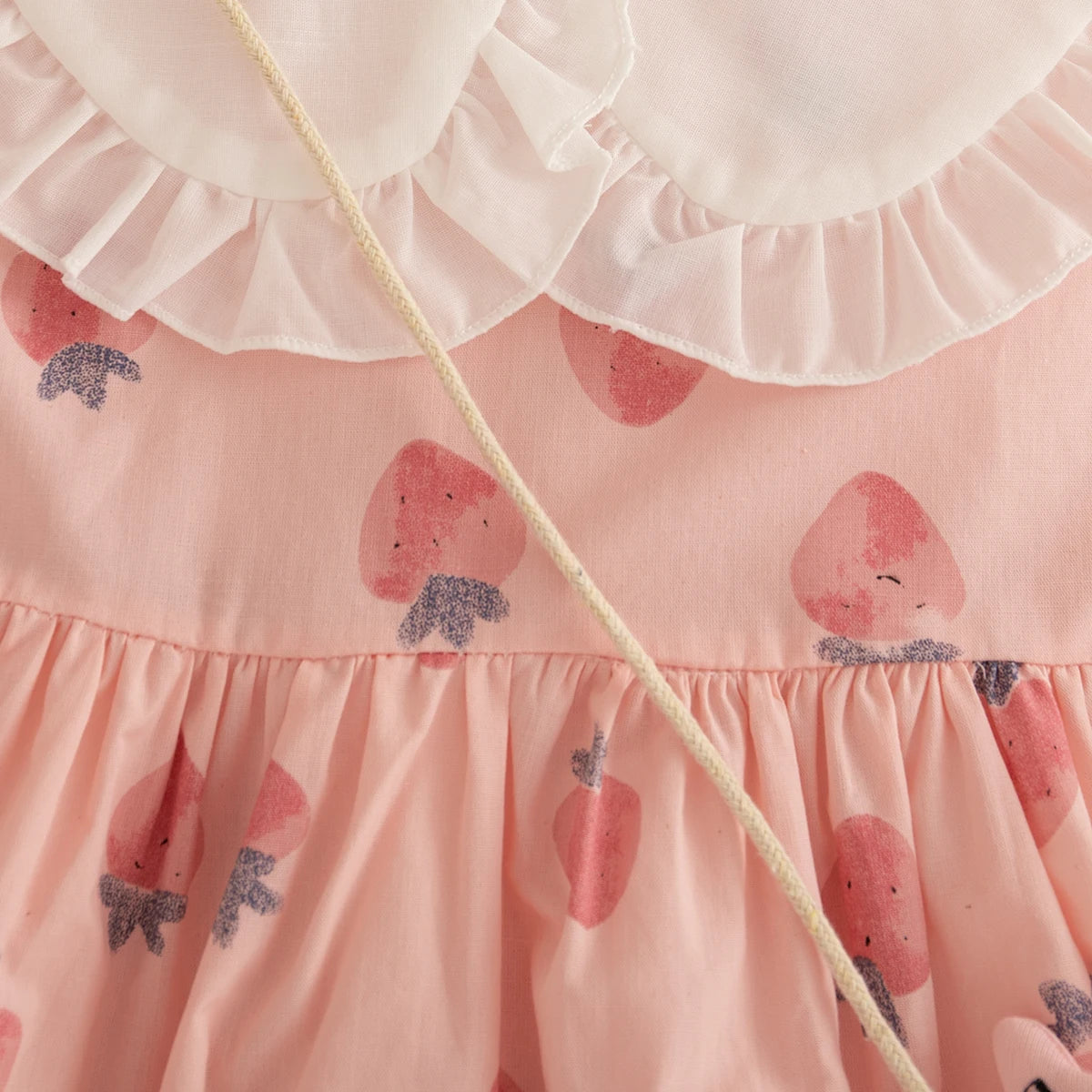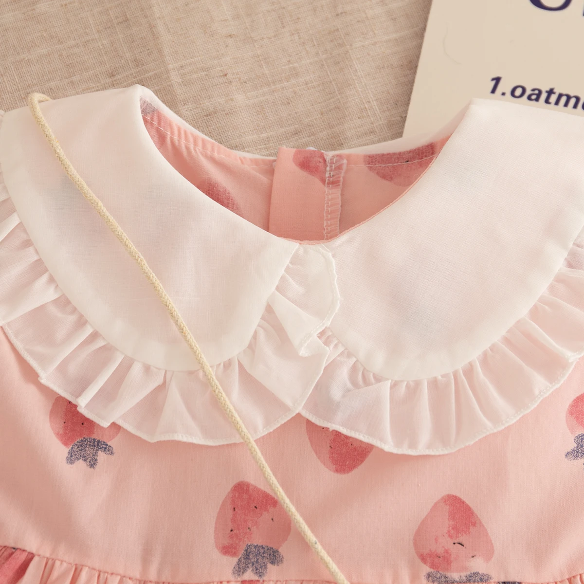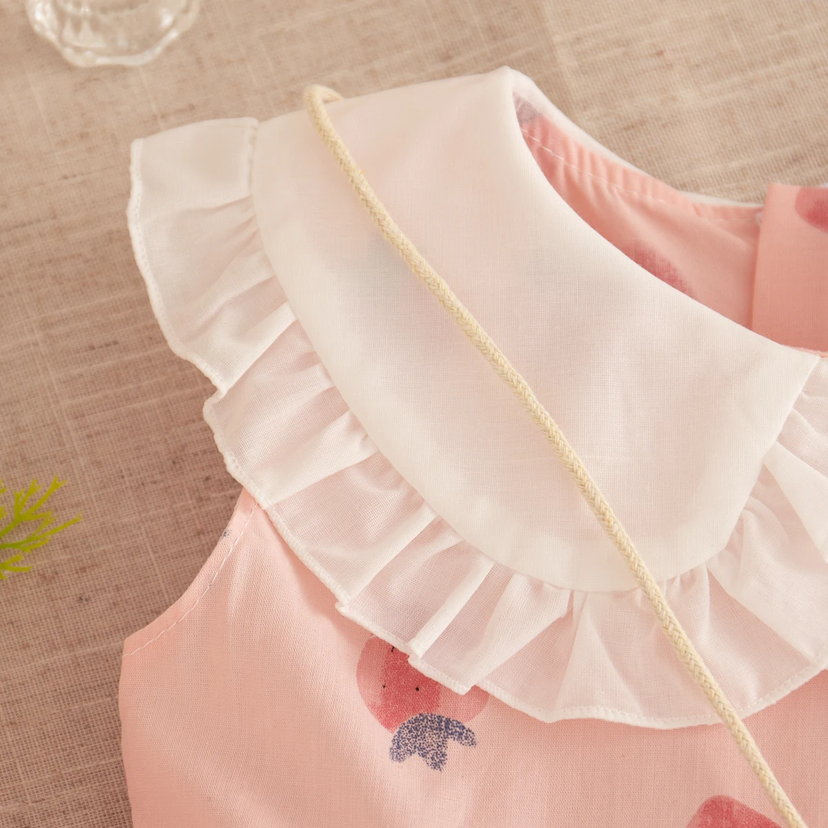 (0-3 Year Old Baby Girl Dress) Summer New Sweet Pink Strawberry Children'S Sleeveless Clothes With Fox Pendant As A Gift