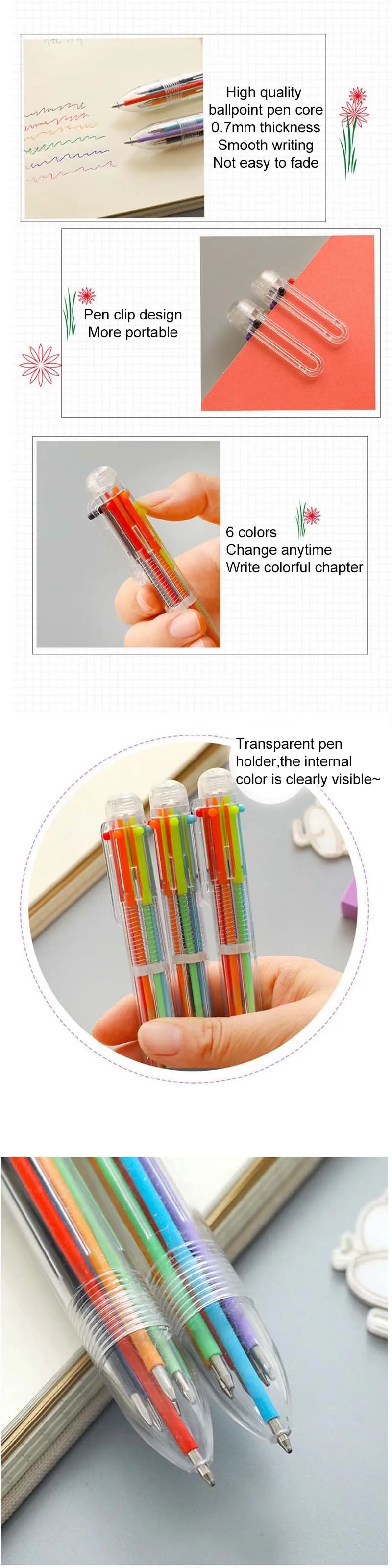 1/3/6pcs Transparent Cartoon Ballpoint Pen 6color Creative Cute Colorful Swivel Supplies Educational School&Office Supplies TMZ