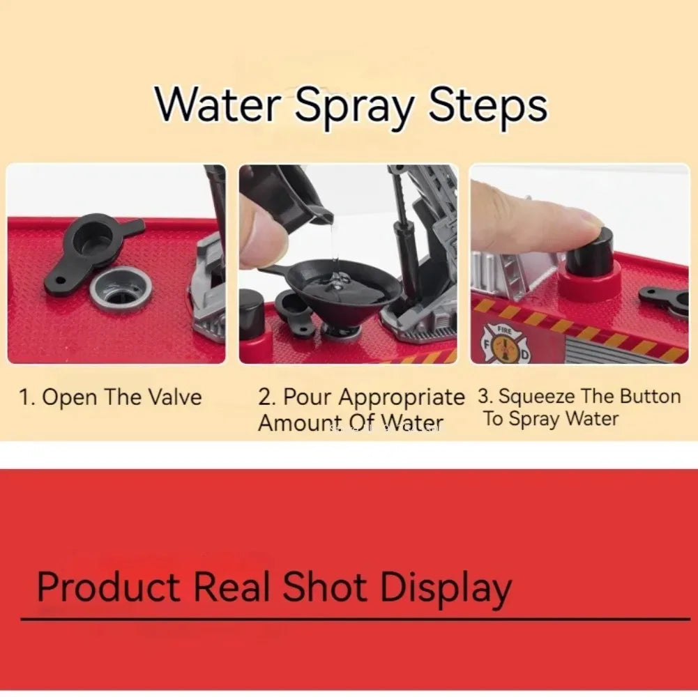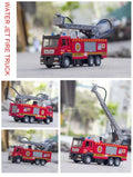 1:32 Scale Water Spray Fire Truck Model Ladder Trucks Toy Car Sound Light Pull Back Doors Opened Vehicle Collection Boys Gift