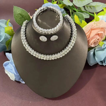 1 necklace, 1 pair of earrings, 1 bracelet, fashionable crystal, 3-piece set, rhinestone claw chain, diamond inlaid collar jewelry set