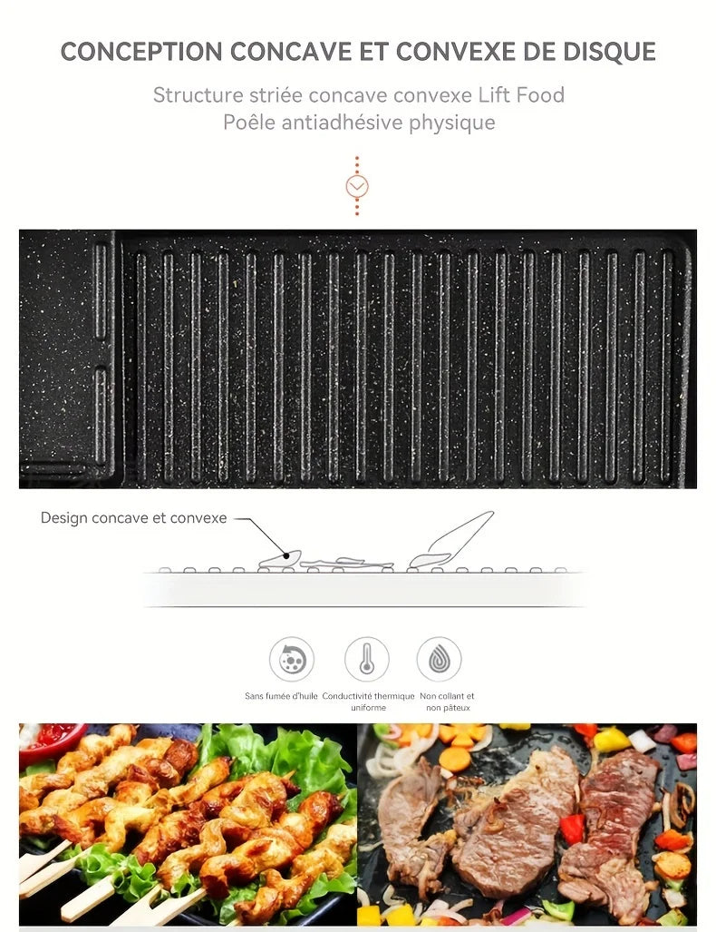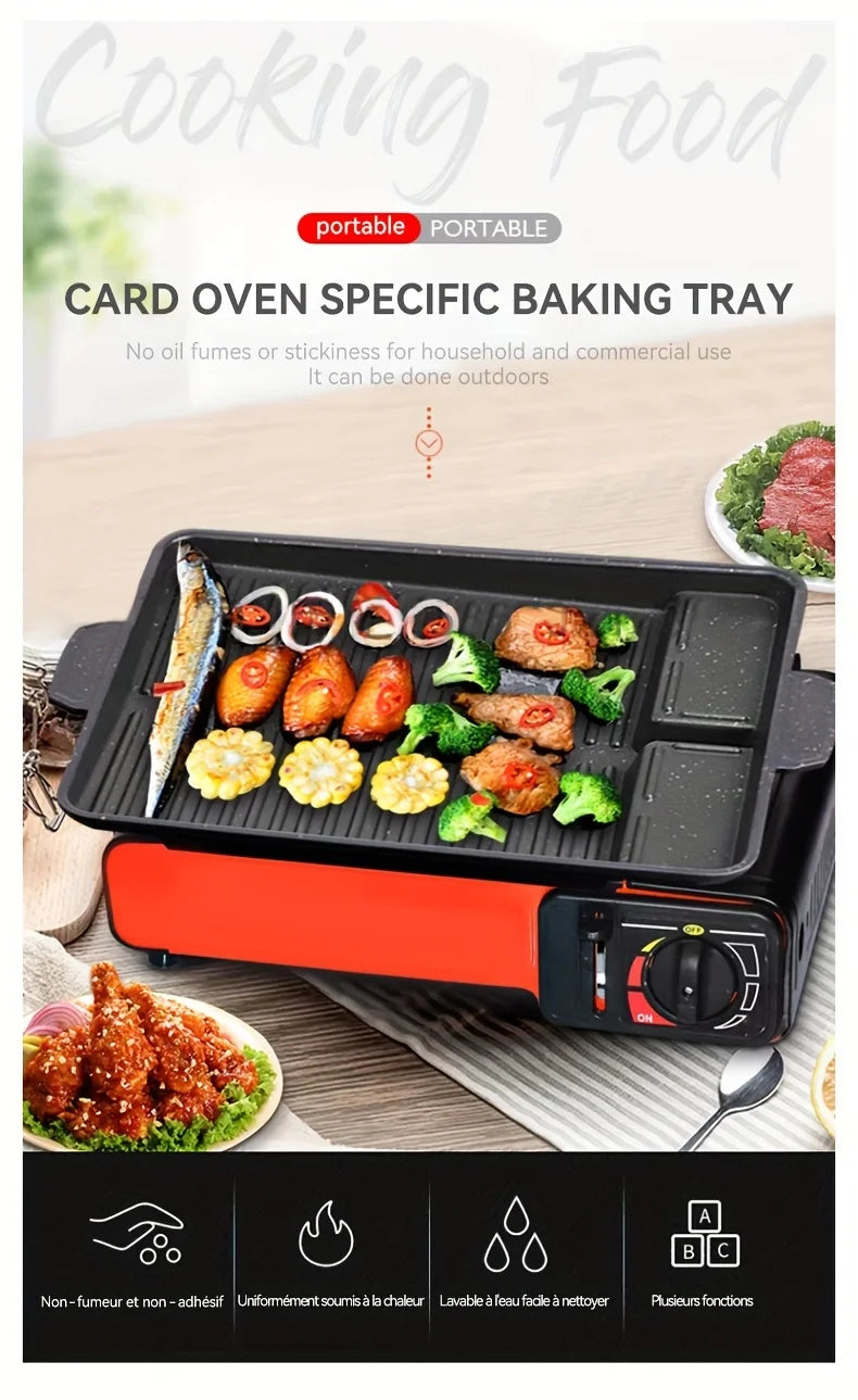 1 non-stick smokeless rectangular baking pan, suitable for indoor and outdoor cooking, restaurant supplies, made of metal