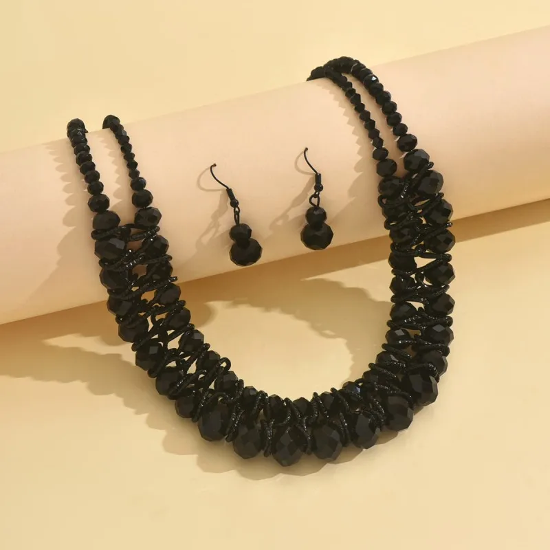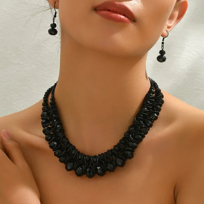 1 pair of earrings +1 pair of necklaces, women's artificial crystal jewelry set, Bohemian style, perfect for everyday gifts!