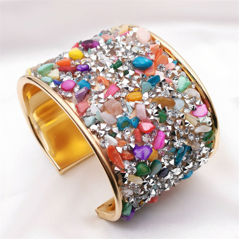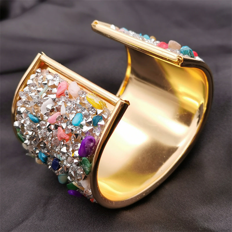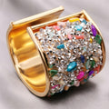 Colorful Cuff Bangle Bracelet Inlaid Shiny Crystal Classic Rainbow Color Bangle For Women