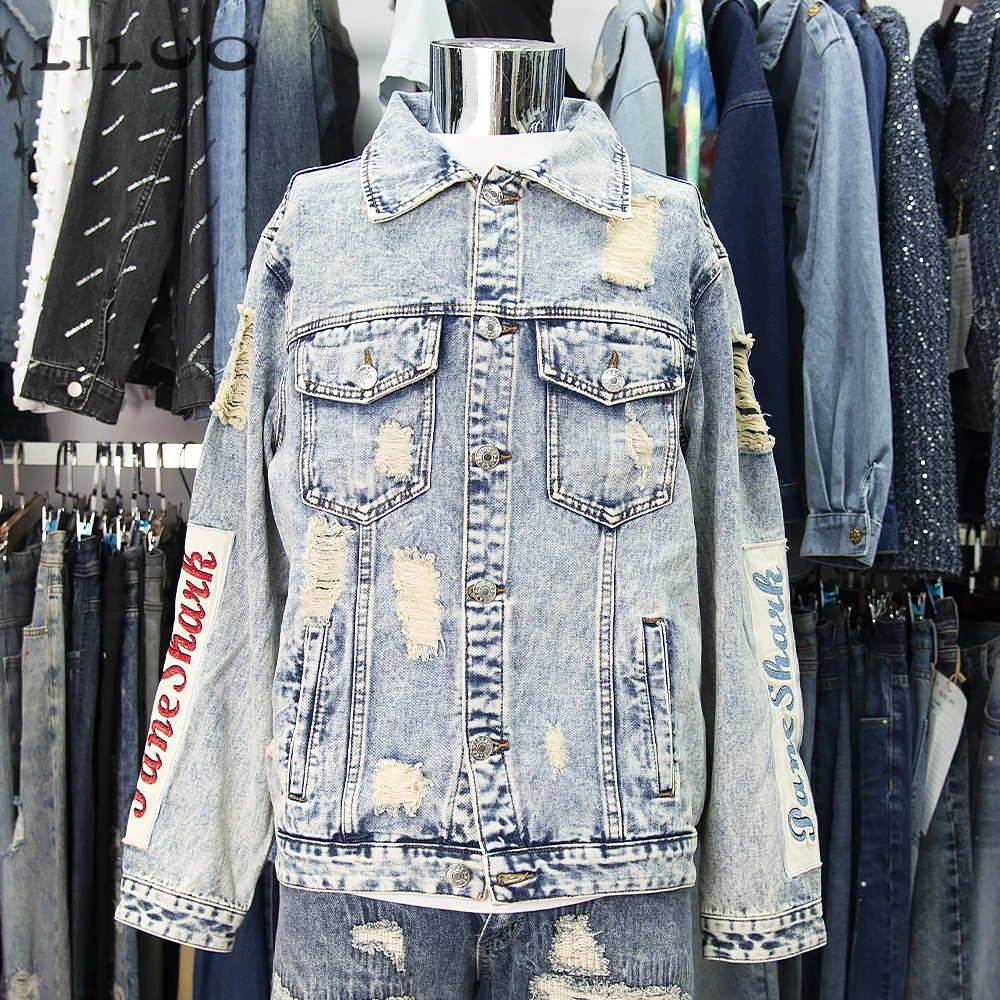 Keywords: Washed Distressed denim man jeans Jacket
