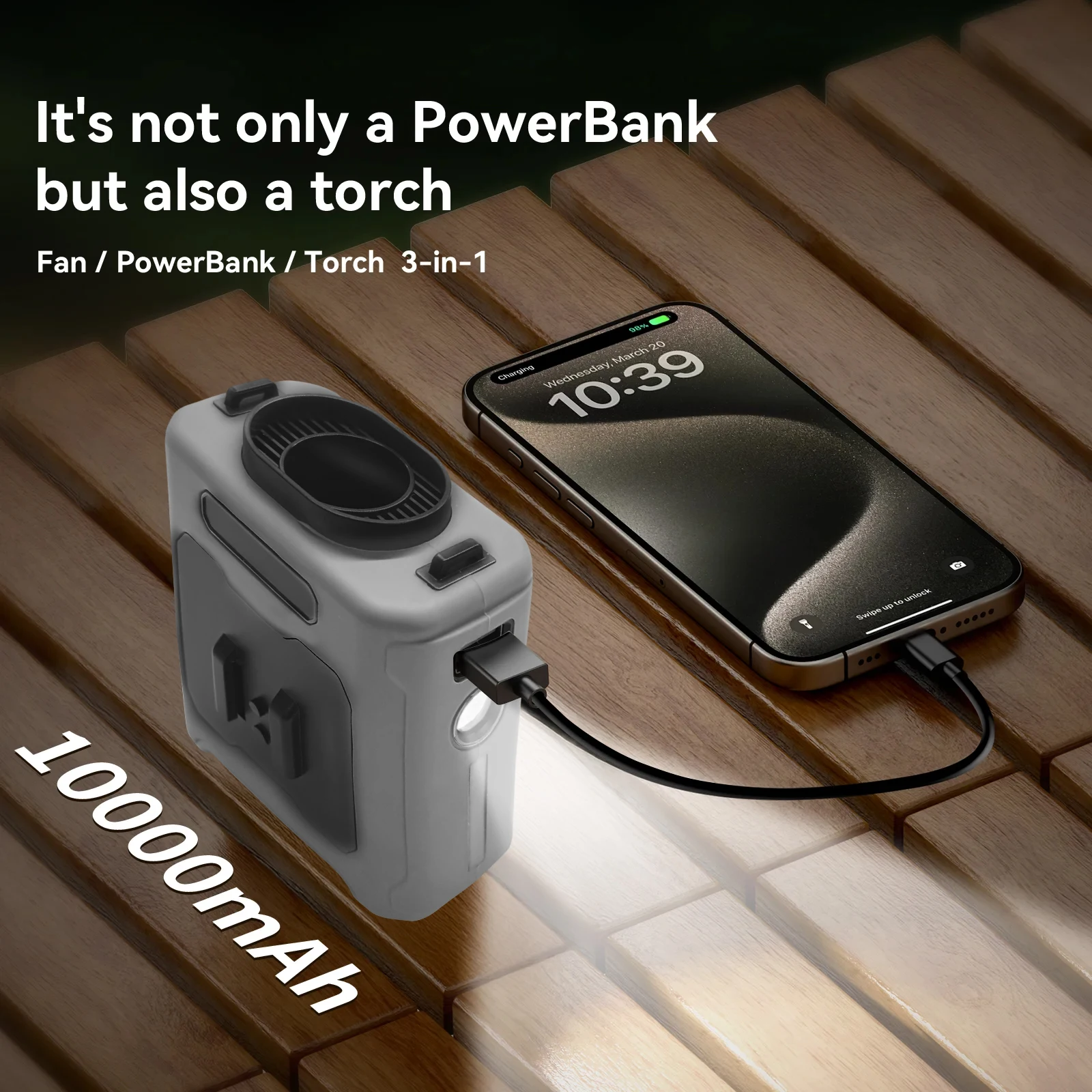 ► 3 Functions in 1: 6.5m/s cooling airflow|100m long-range beam|10000mAh power bank (charges phones 3x)