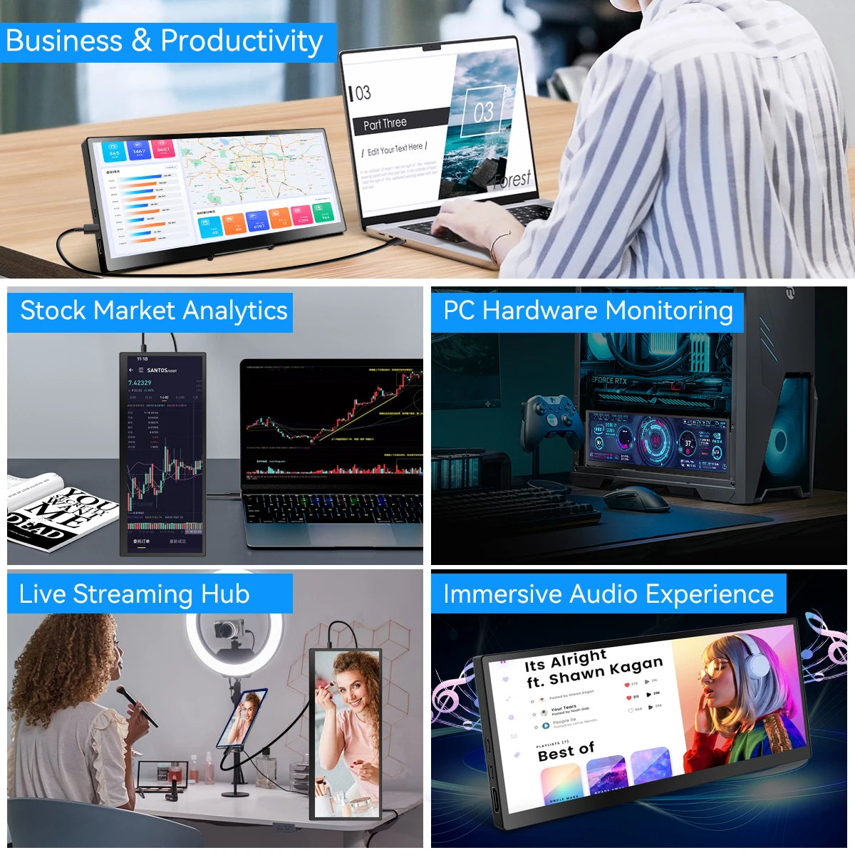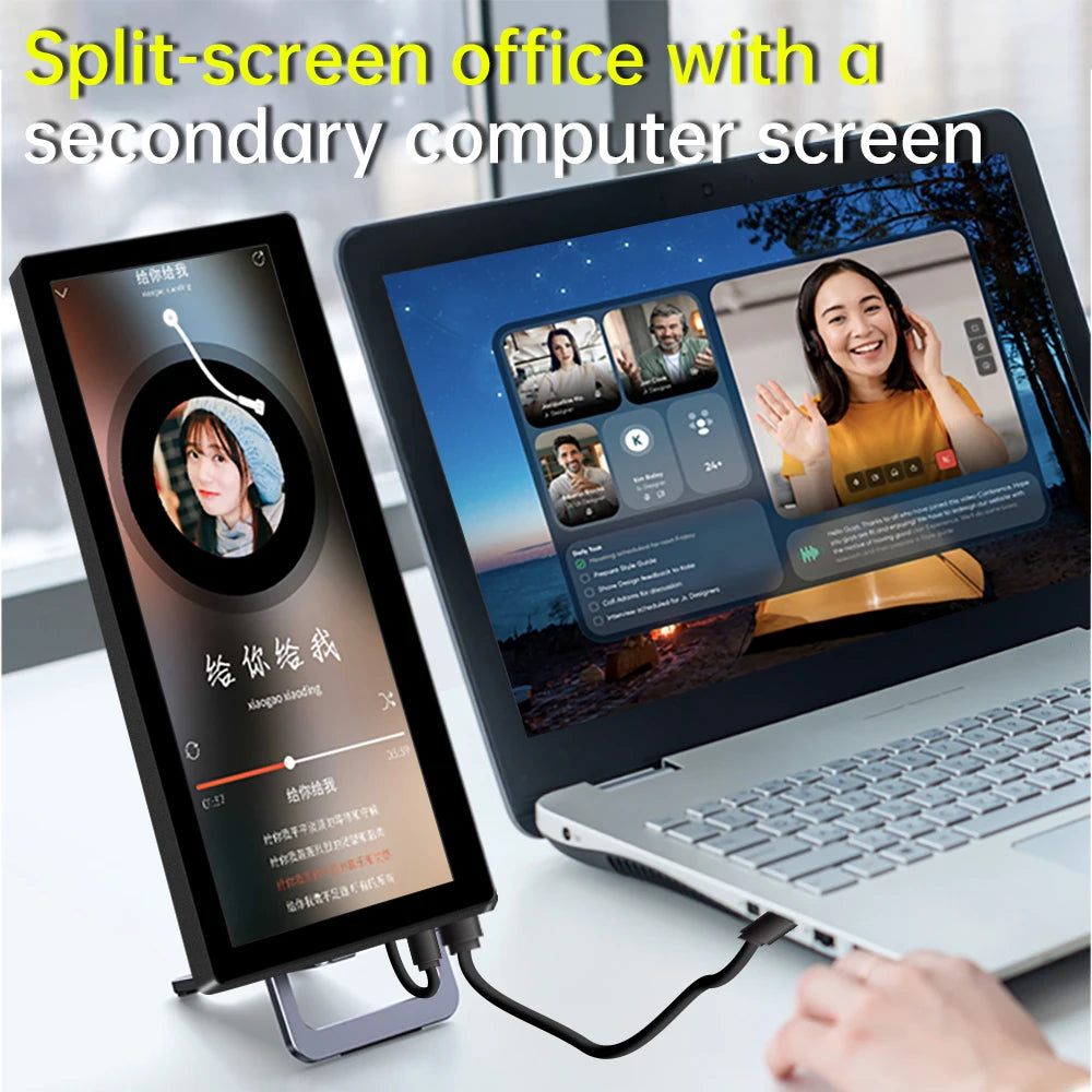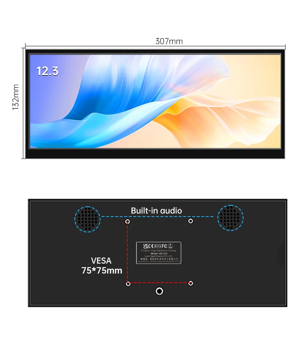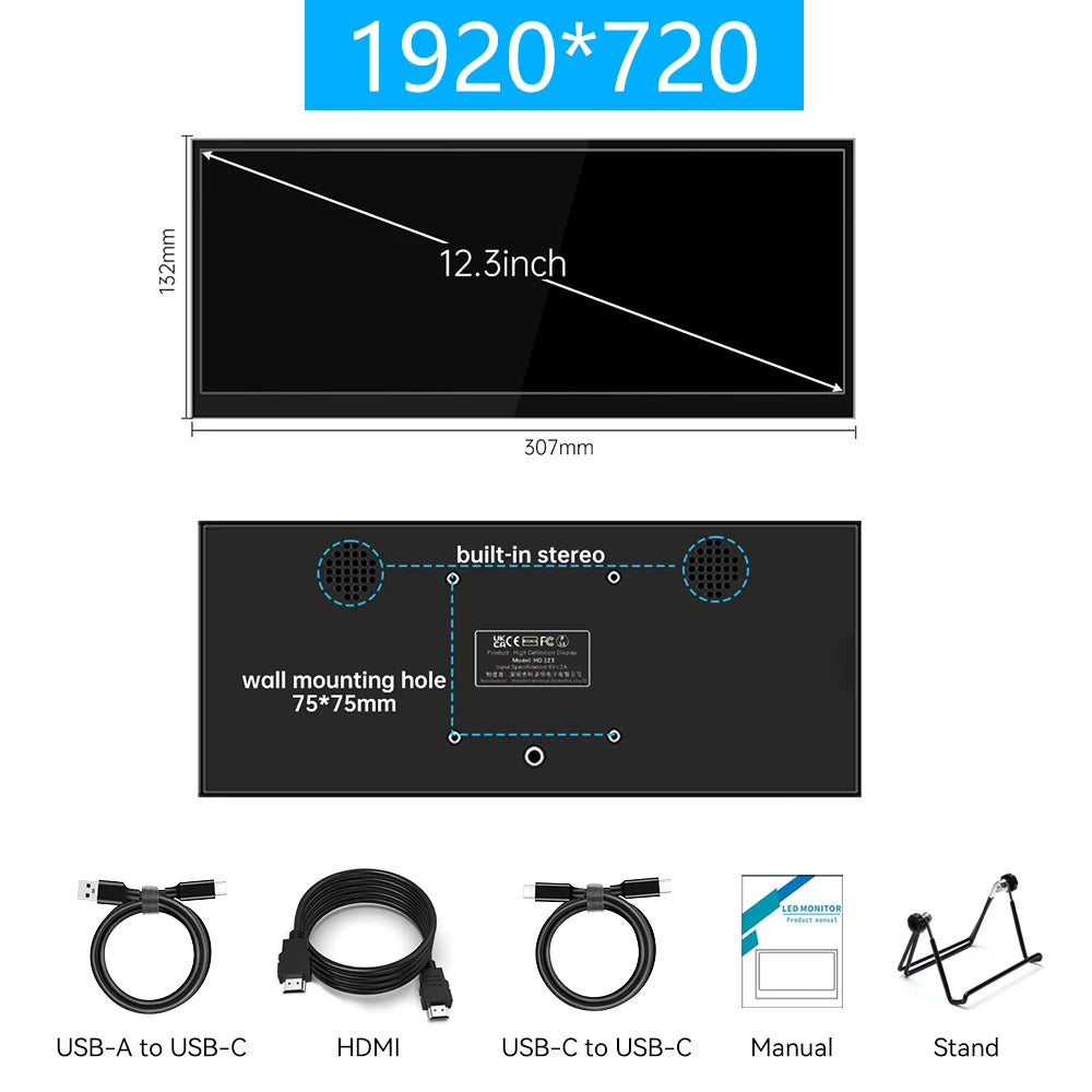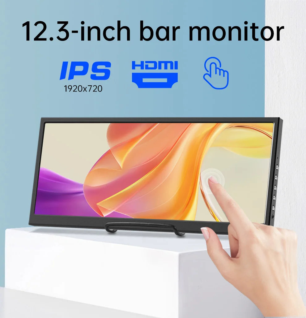 12.3 inch touch screen monitor with HDMI and Type C, 1920x720 IPS display, LCD bar computer secondary extension screen