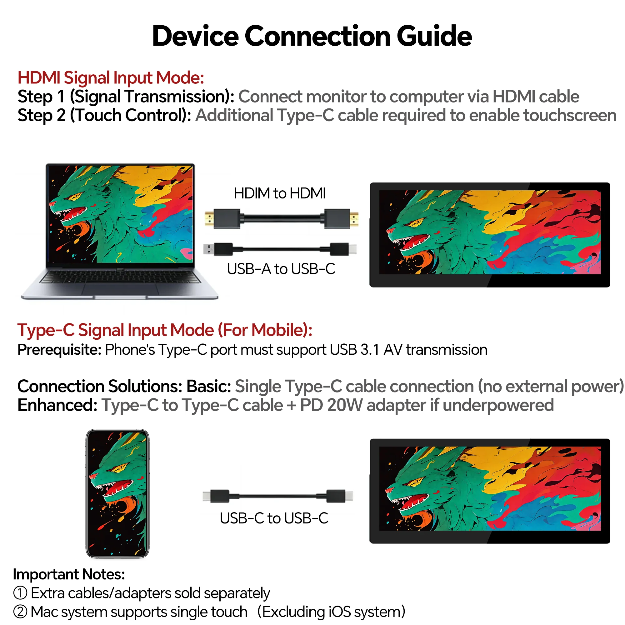Step 2 (Touch Control): Additional Type-C cable required to enable touchscreen