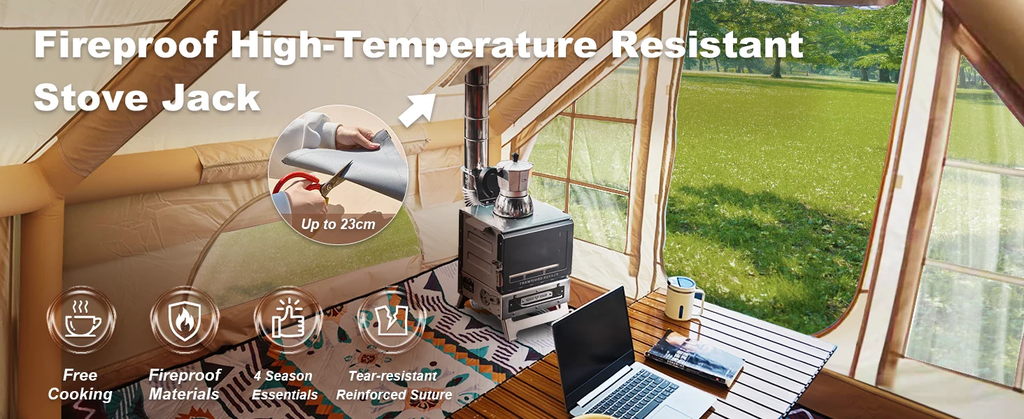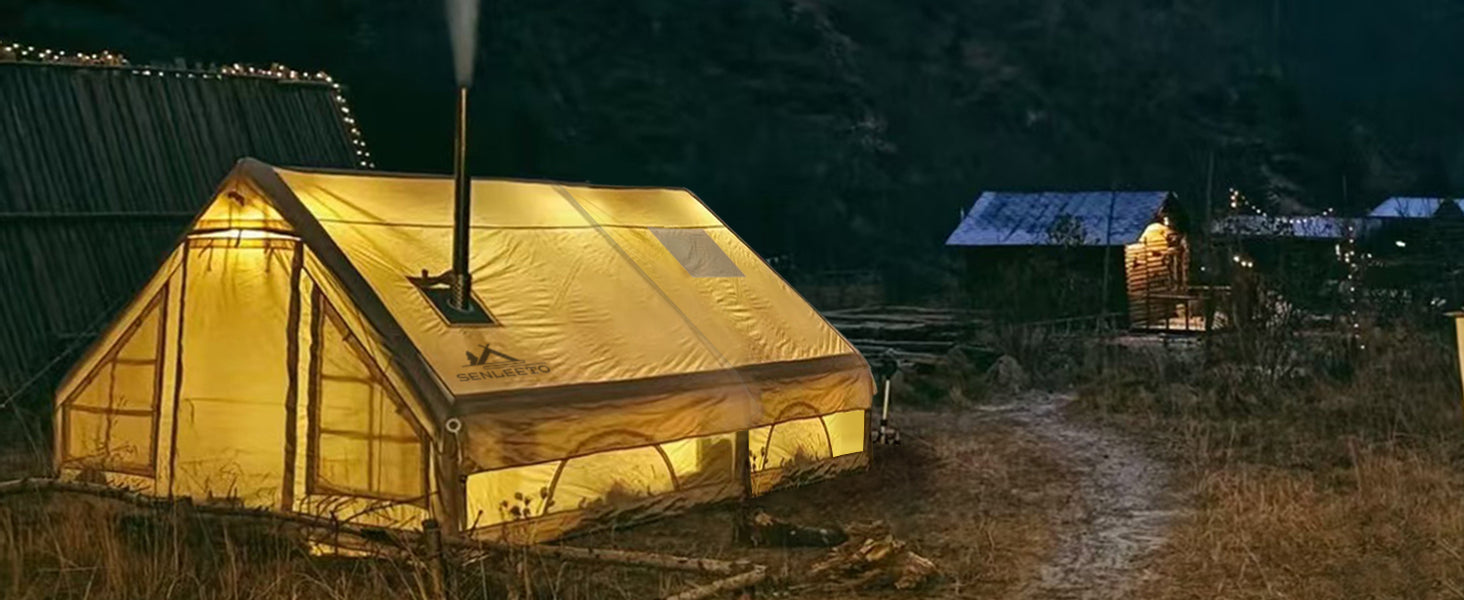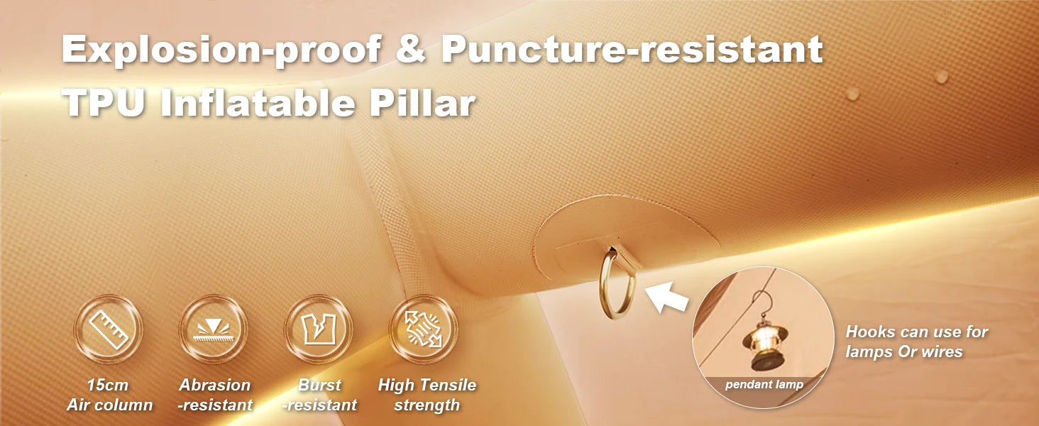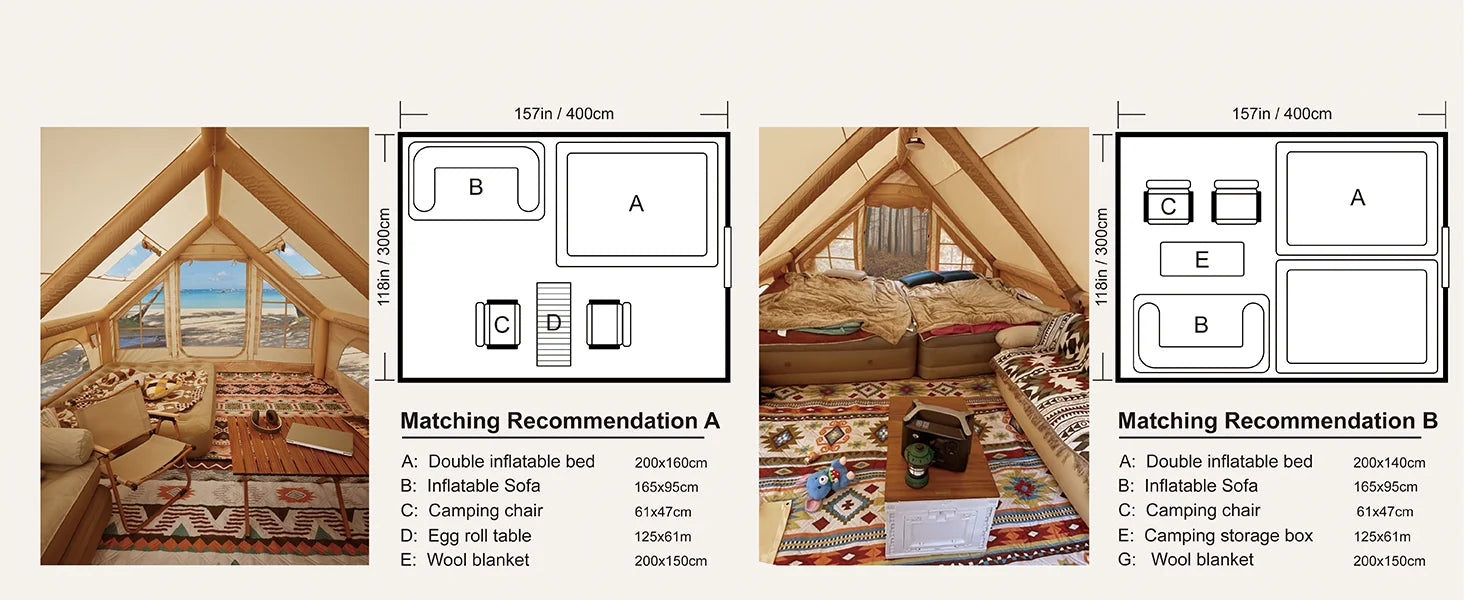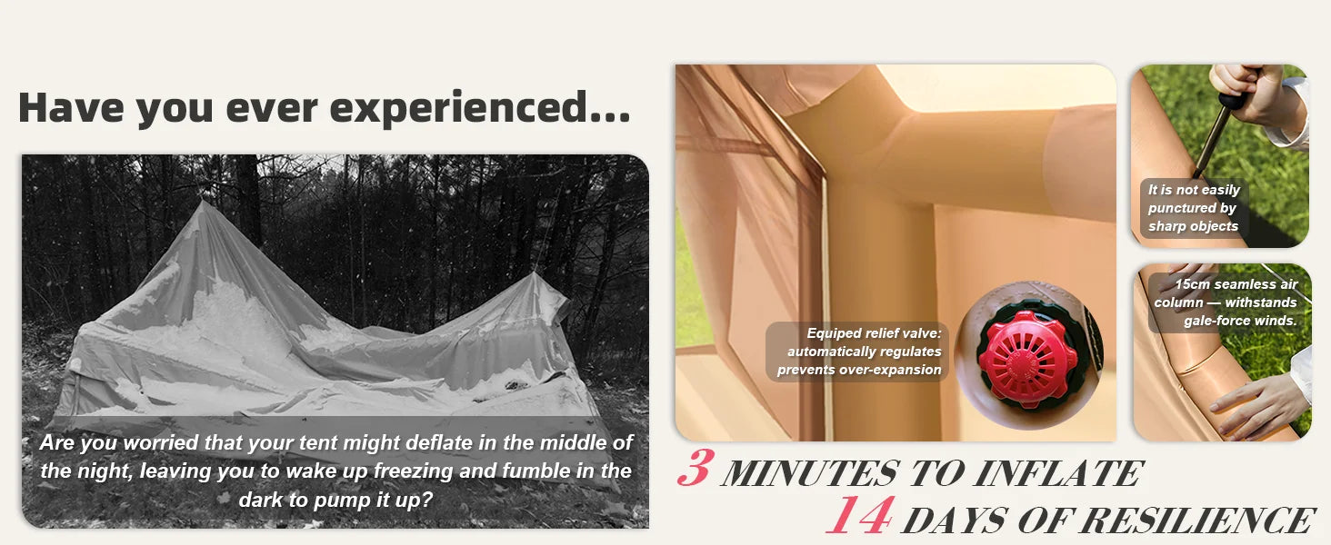 129 Sqft Large inflatable tent with Tarp,8 Person Inflatable Camping Tent 4 Season Glamping Tent Fireproof Blanket Blow up tent