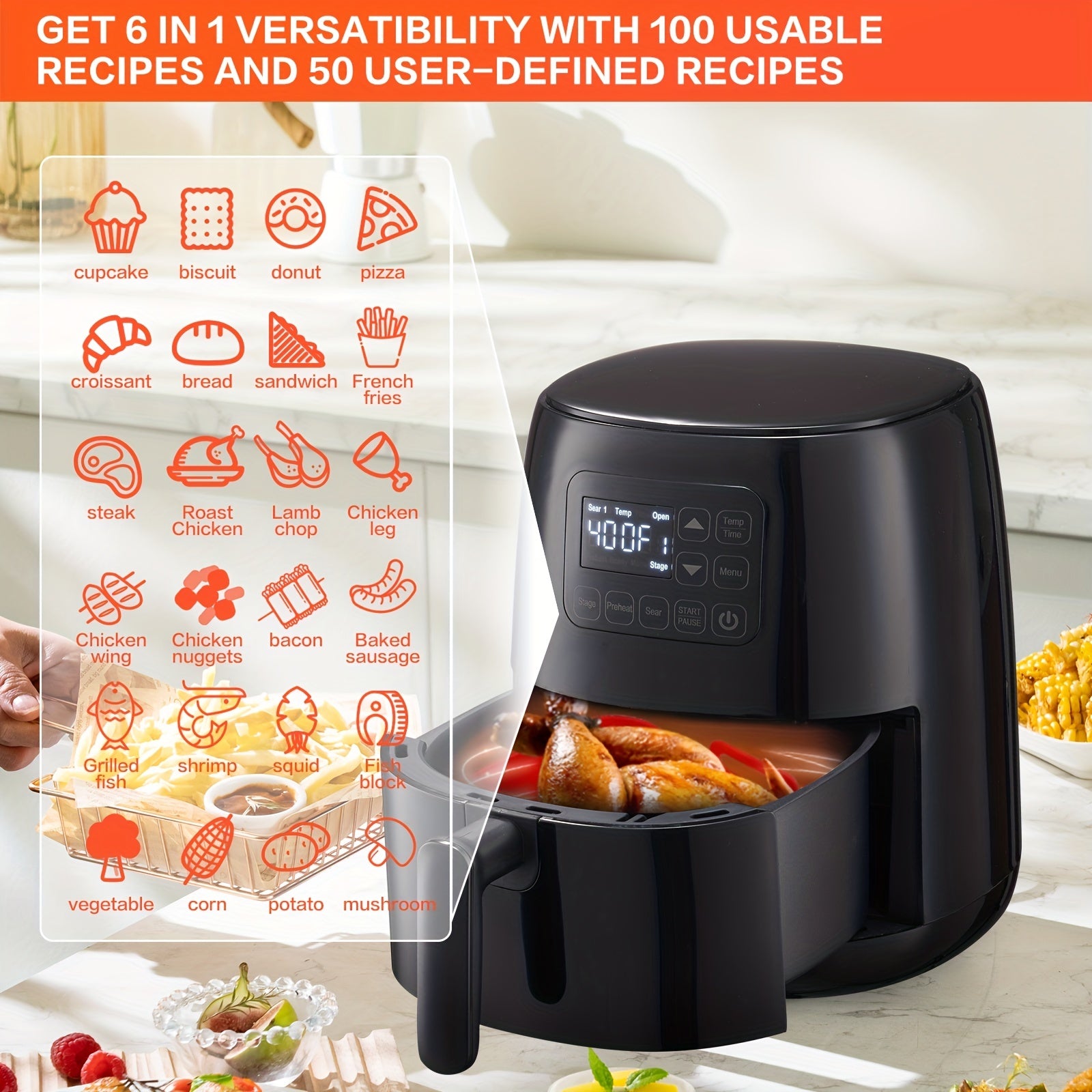 · Versatile: Not just for frying, this oven can also bake, grill, and roast, making it a versatile addition to your kitchen.
