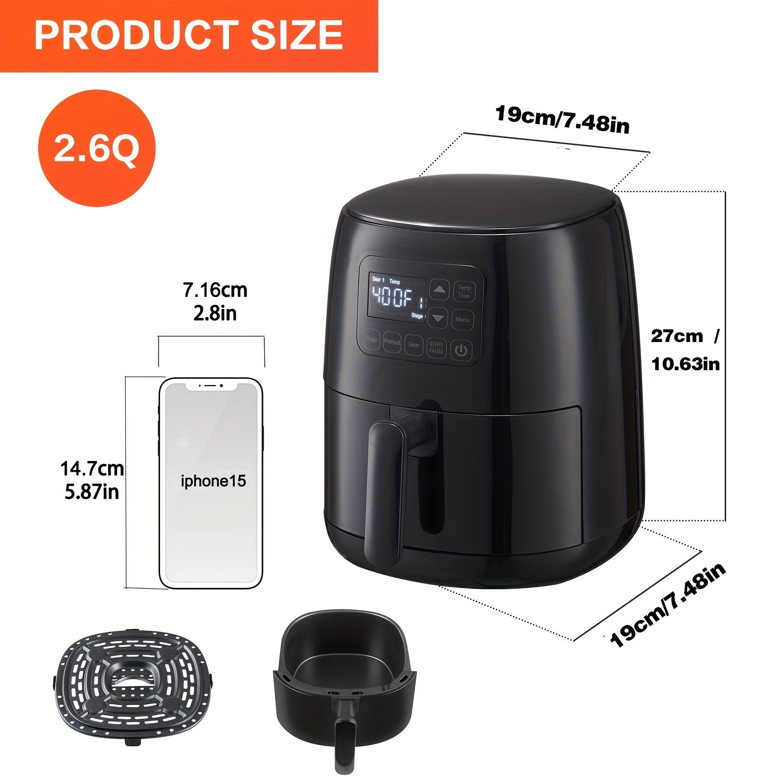 · Large Capacity: With a 2.6 quart capacity, this air frying oven can easily cook meals for the whole family.