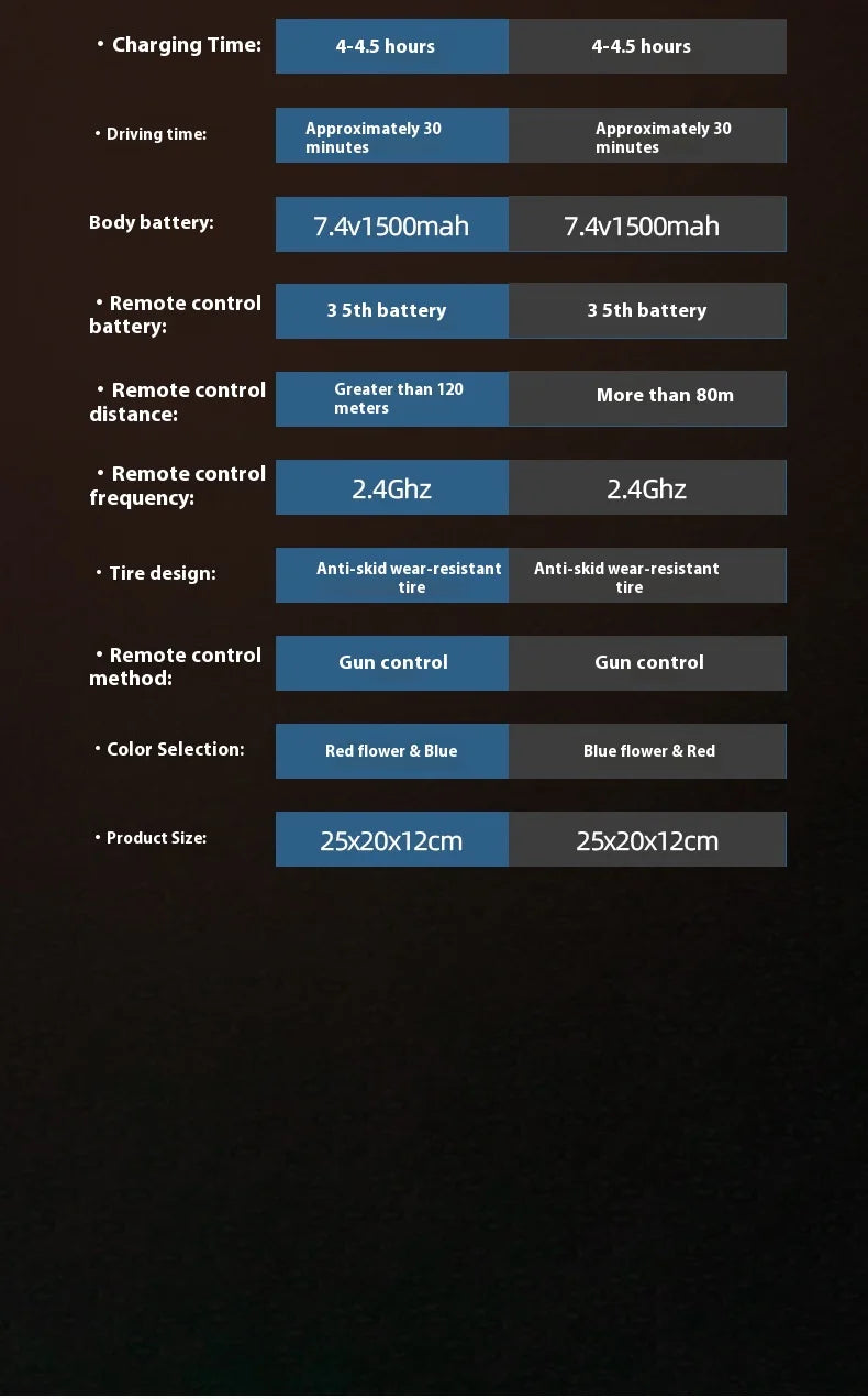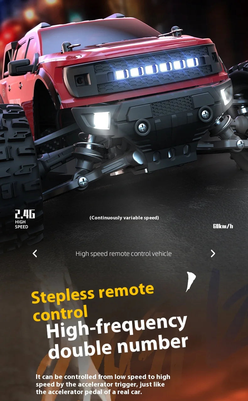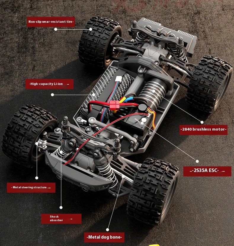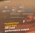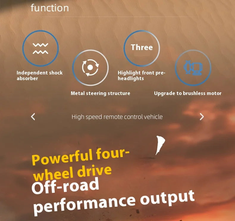 1. Adopting a simulation structure design, it has a real car handling feel, achieving full proportional continuously variable transmission, high-speed driving, rapid acceleration, deceleration, braking, reverse, left turn, right turn;