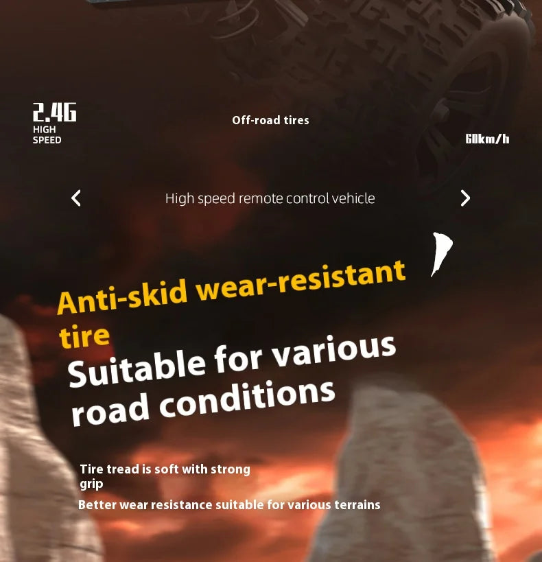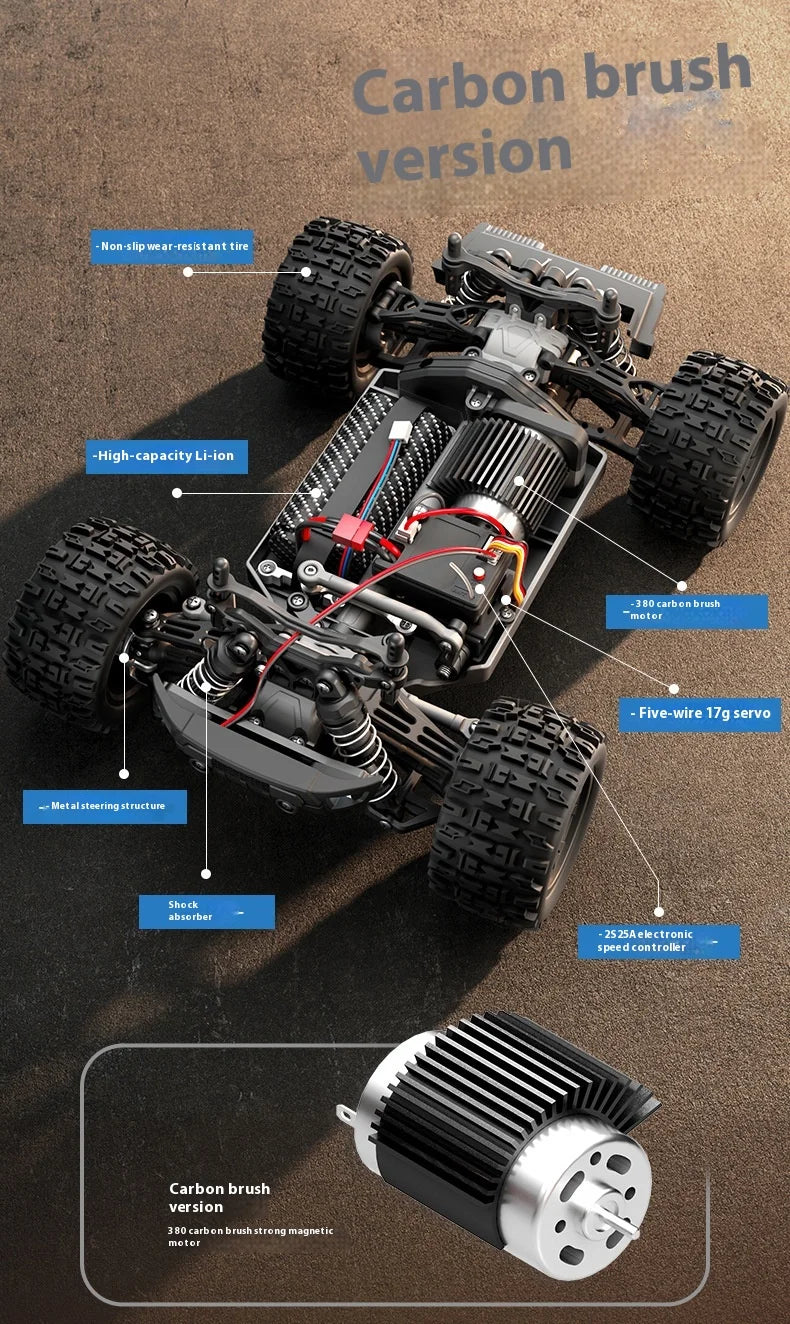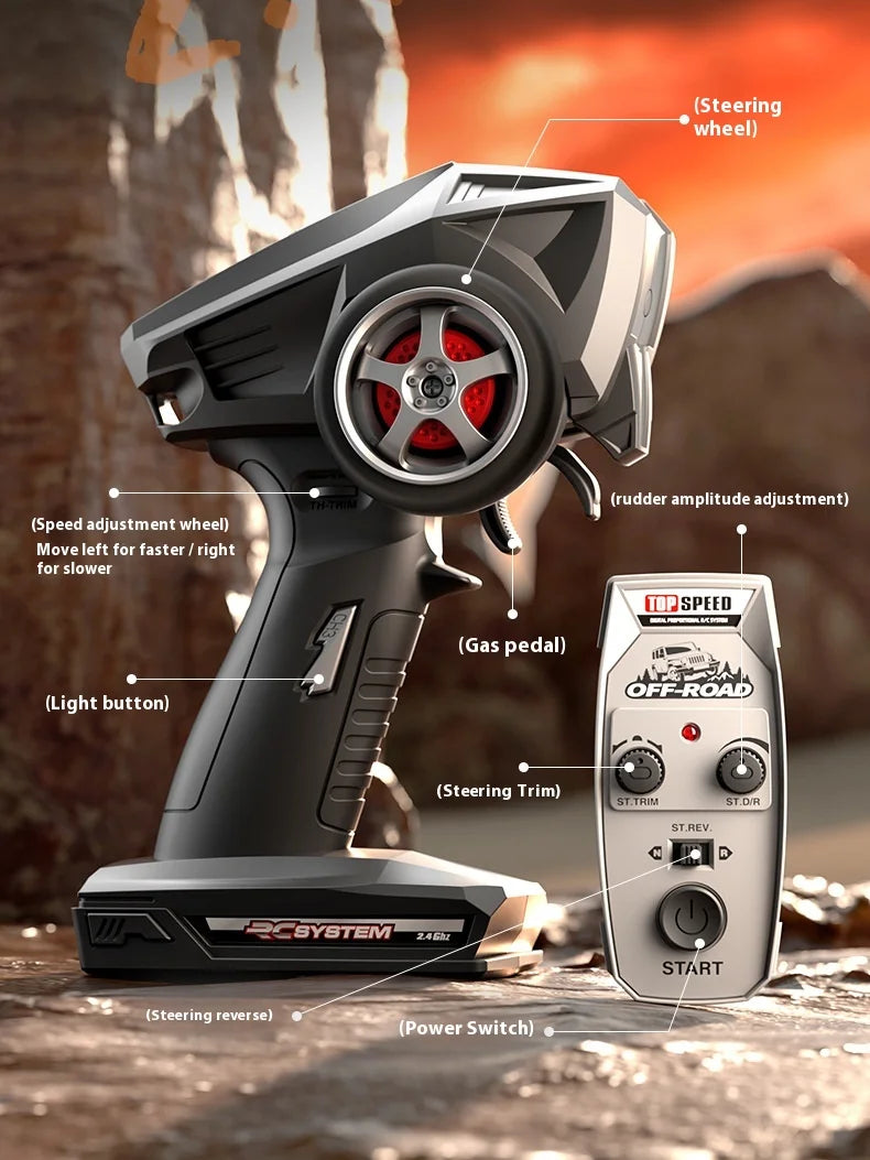 4. Remote control system: 2.4G full proportional synchronous remote control system Fully proportional throttle/steering;