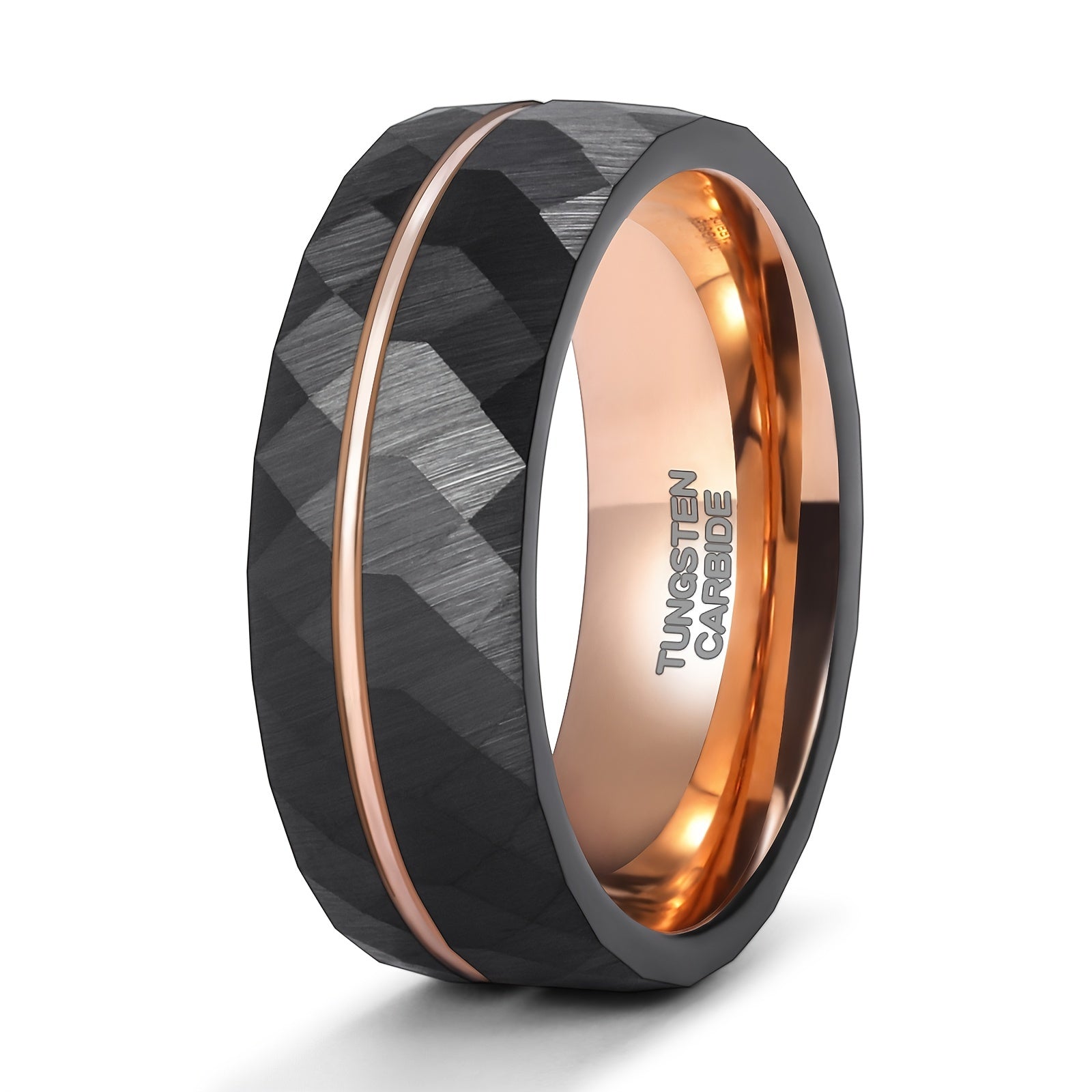 Fashion Inlaid Rose Golden Wire Black Rhombic Men's Tungsten Steel Ring