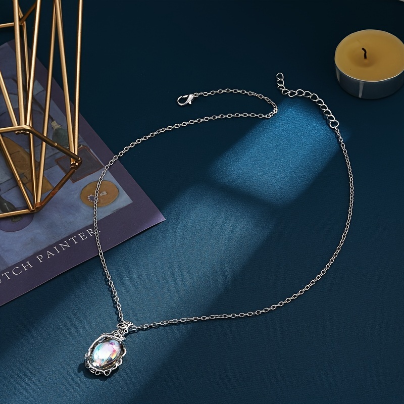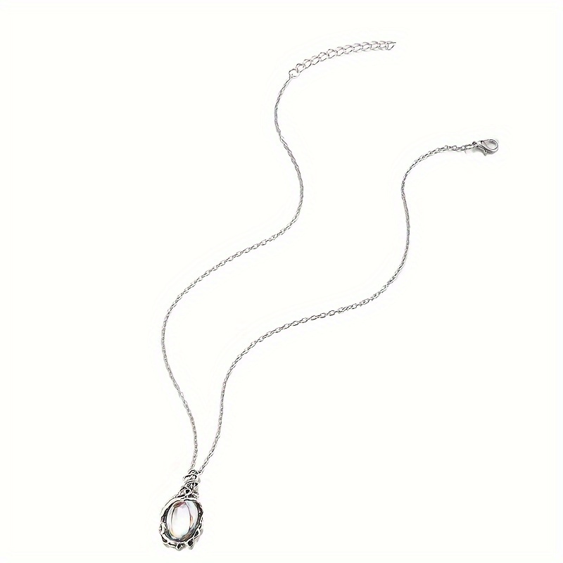 1pc Exquisite Moonstone Pendant Necklace - Retro Bohemian Leaf Rattan Accessories for Women, Unique Christmas and Halloween Gift Idea, Handmade Jewelry with Natural Stone and Delicate Chain