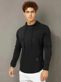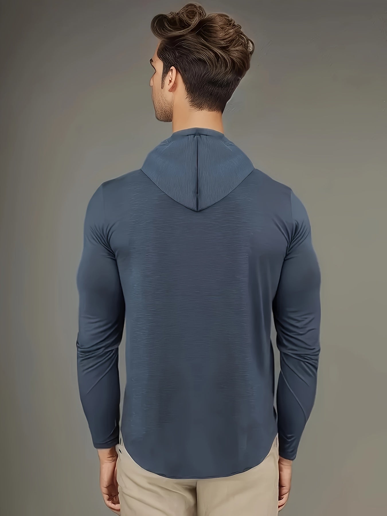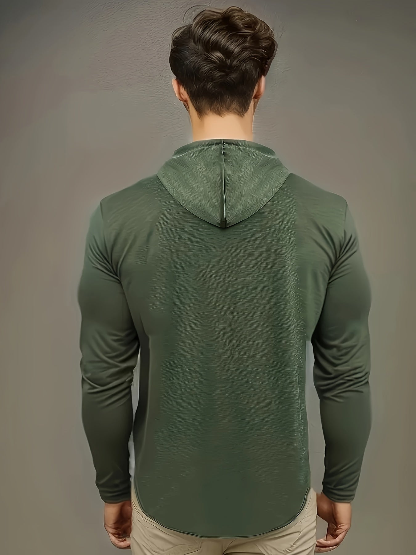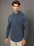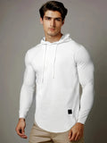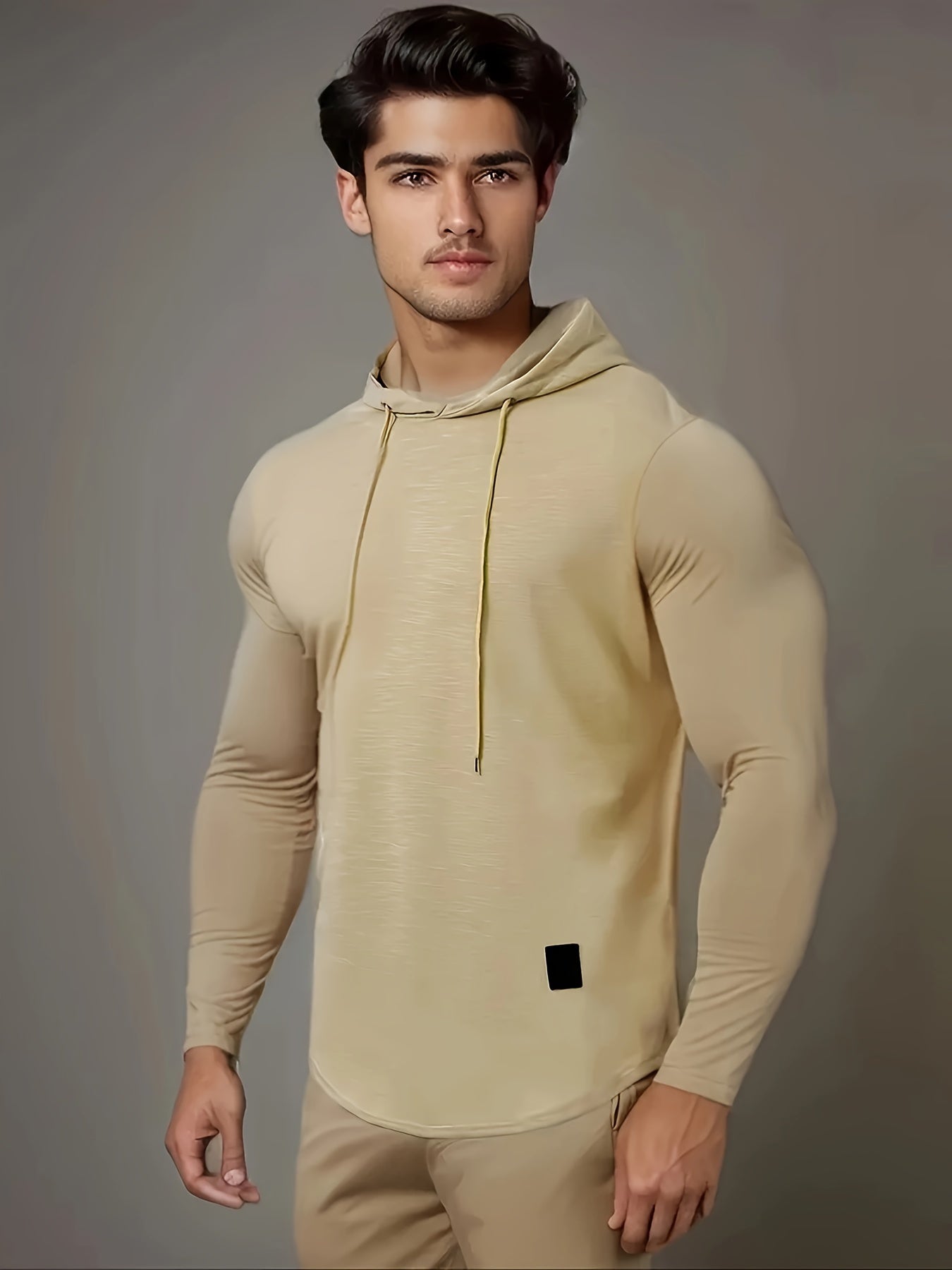 [1pc Long Sleeve Casual Hoodie] 1pc Men'S Casual Fashion Hoodie - Long Sleeve, Solid Color, Regular Fit, Knit Polyester, Micro-Elastic, Regular Length, Crew Neck Pullover