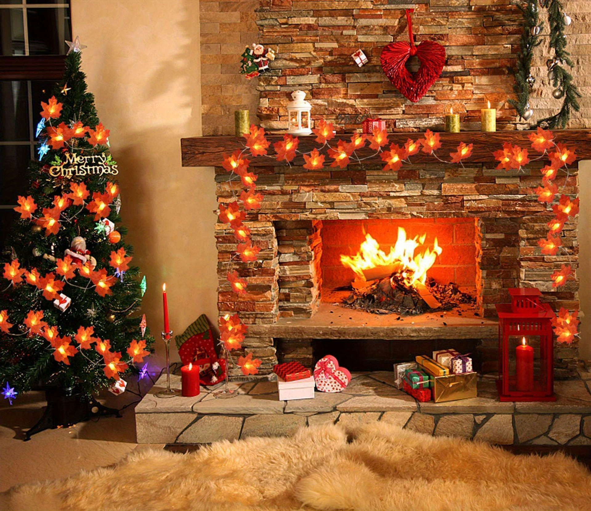 1pc Maple Leaf LED Fairy Lights - Warm White/Cool Yellow/Red Glow, -in-Free -Free Switch-Controlled / String Lights for Stair Railings, Fence, Party, Thanksgiving, Halloween, Fall & Autumn Tree Decorations (Plastic