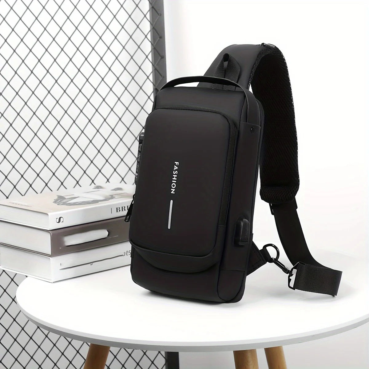 1pc Men'S Anti-Theft Password Lock Chest Bag - Made of Durable Oxford Fabric, Adjustable Shoulder Strap,Suitable for Motorcycles