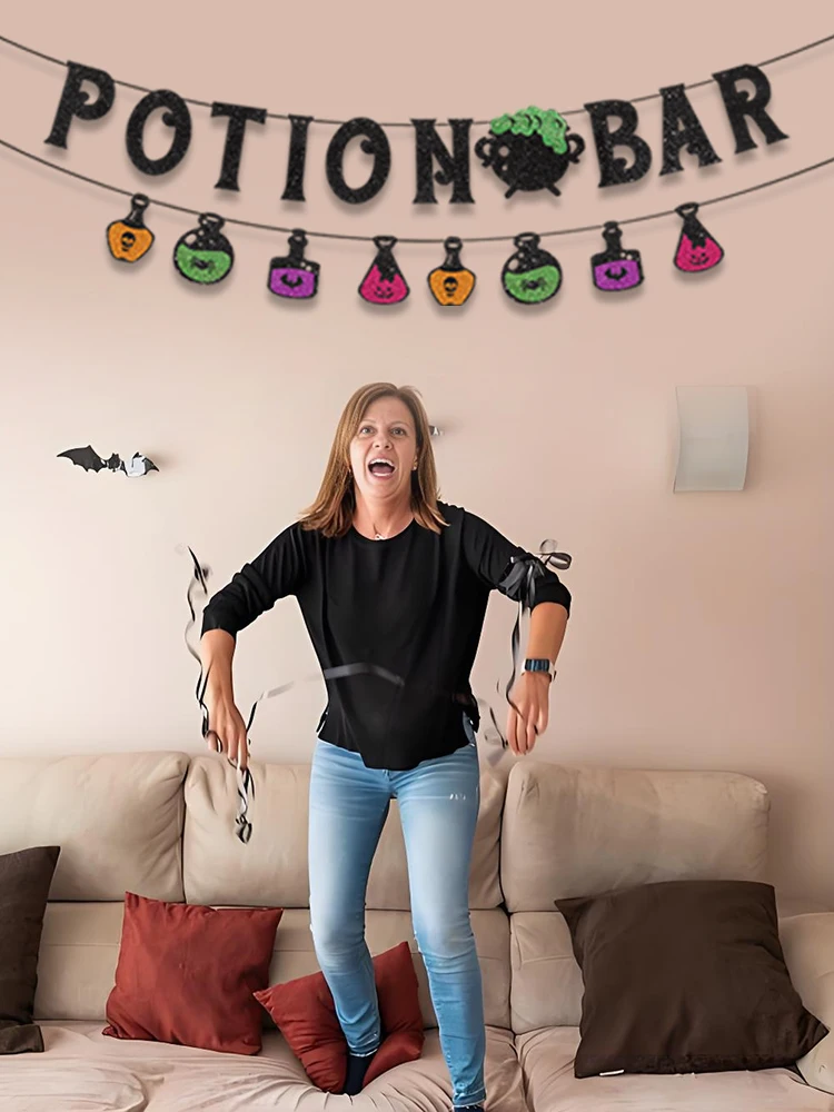 1pc Potion Bar Halloween Theme Party Decorations, Halloween Flags, Halloween Banners, Halloween Decorations for Background Walls