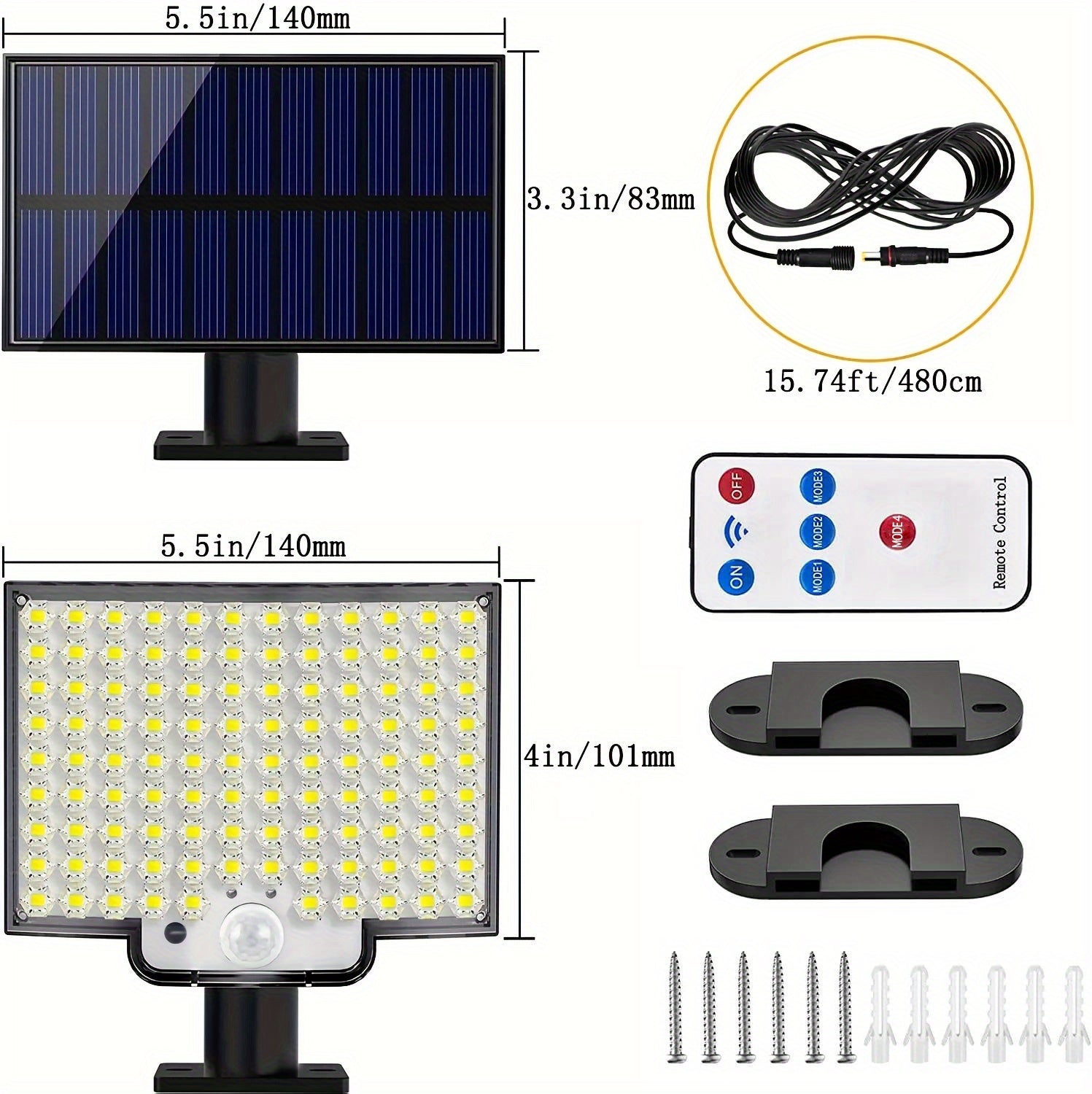 1pc Sunshine Outdoor 106LED Super Bright Motion Sensor Solar Power LED Garden Wall Light 4 Working Modes 5.5*4in