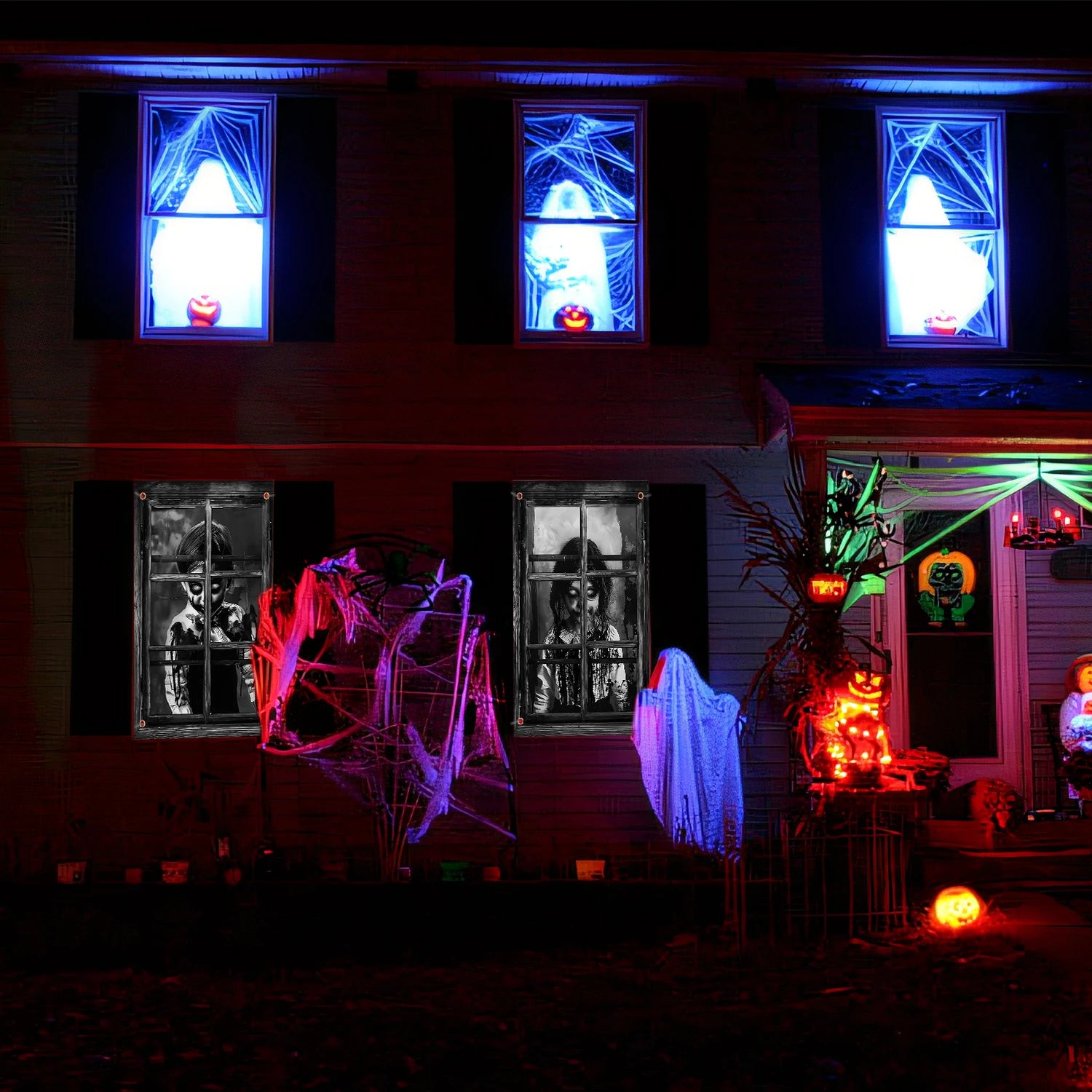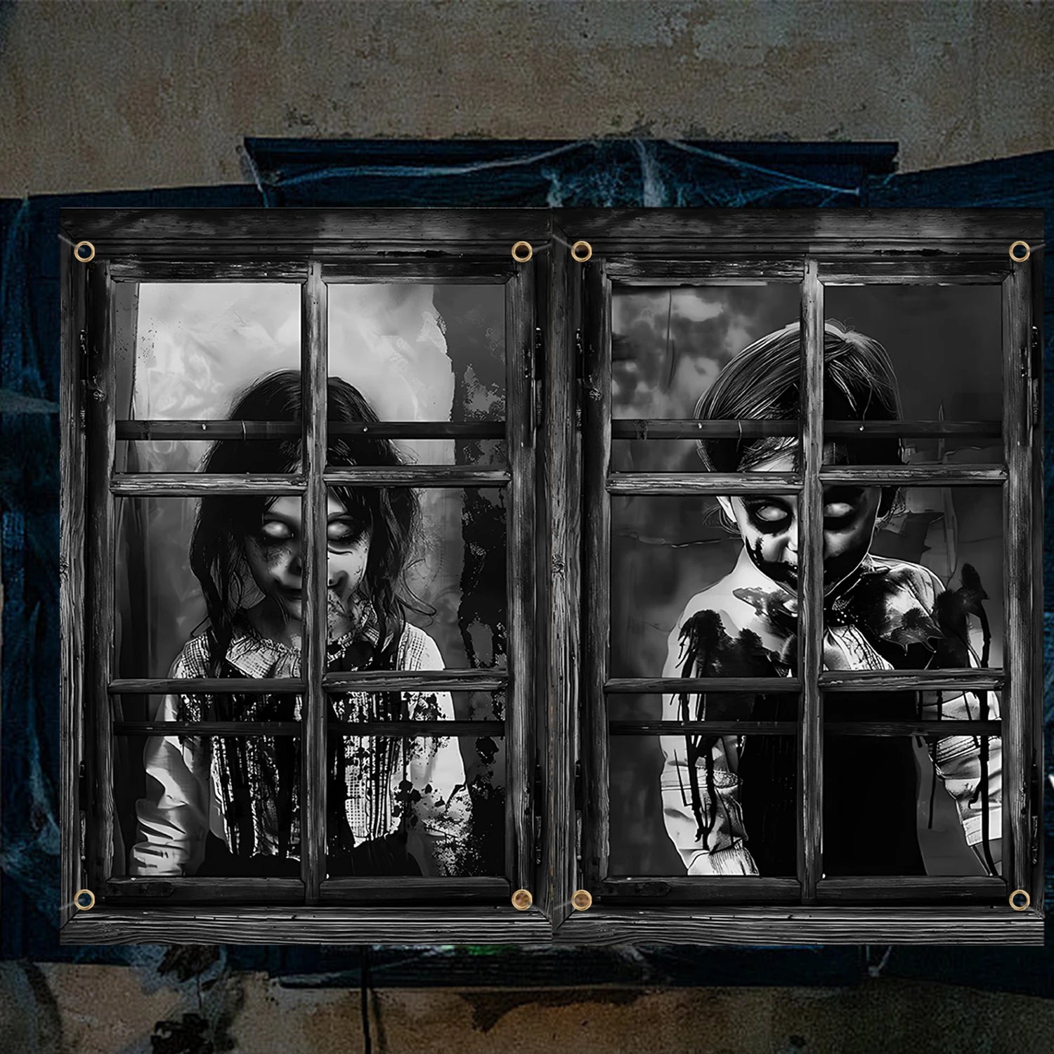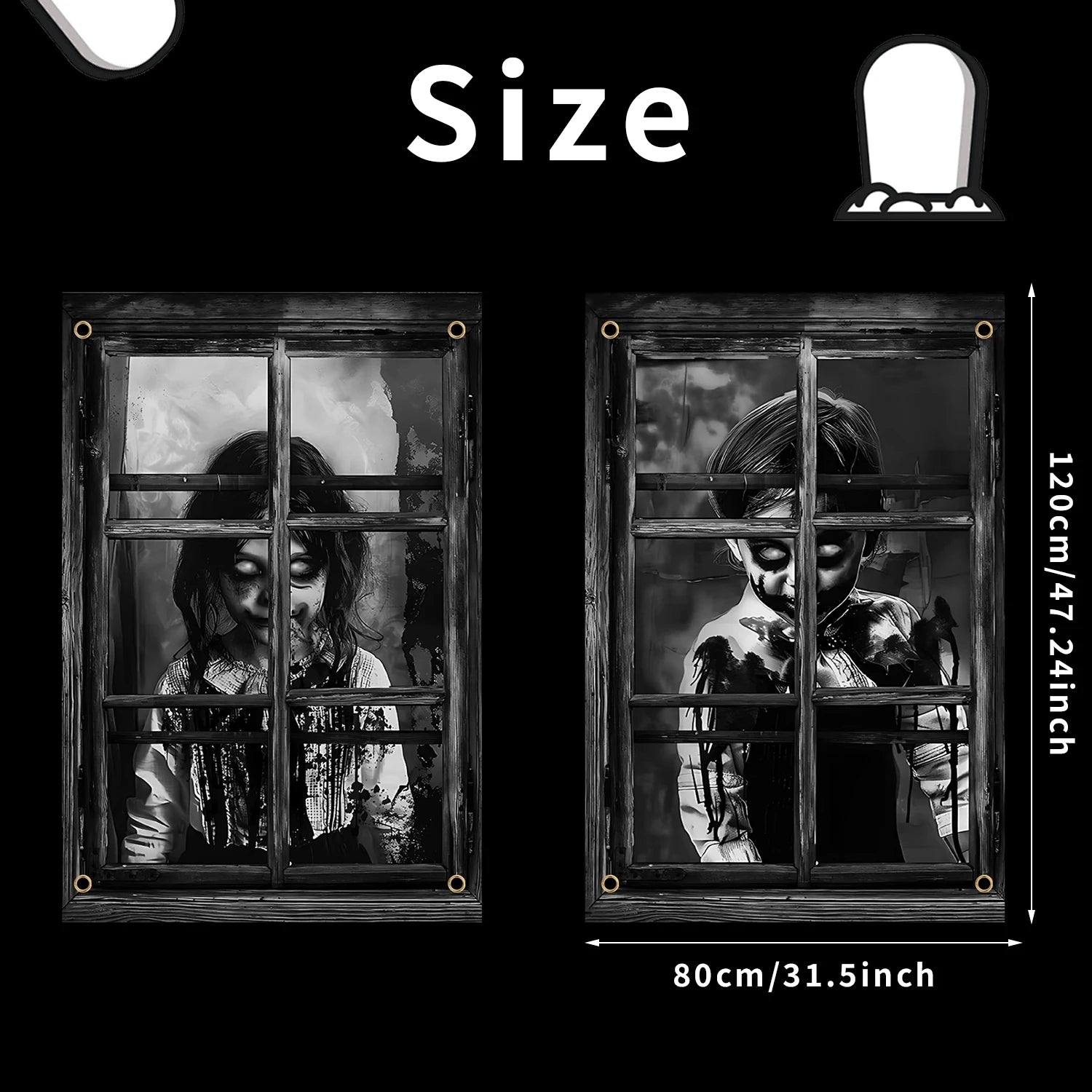 2 Pcs Scary Halloween Curtain Halloween Window Silhouette Decoration Blood Halloween Window Cover Horror Halloween Theme Window