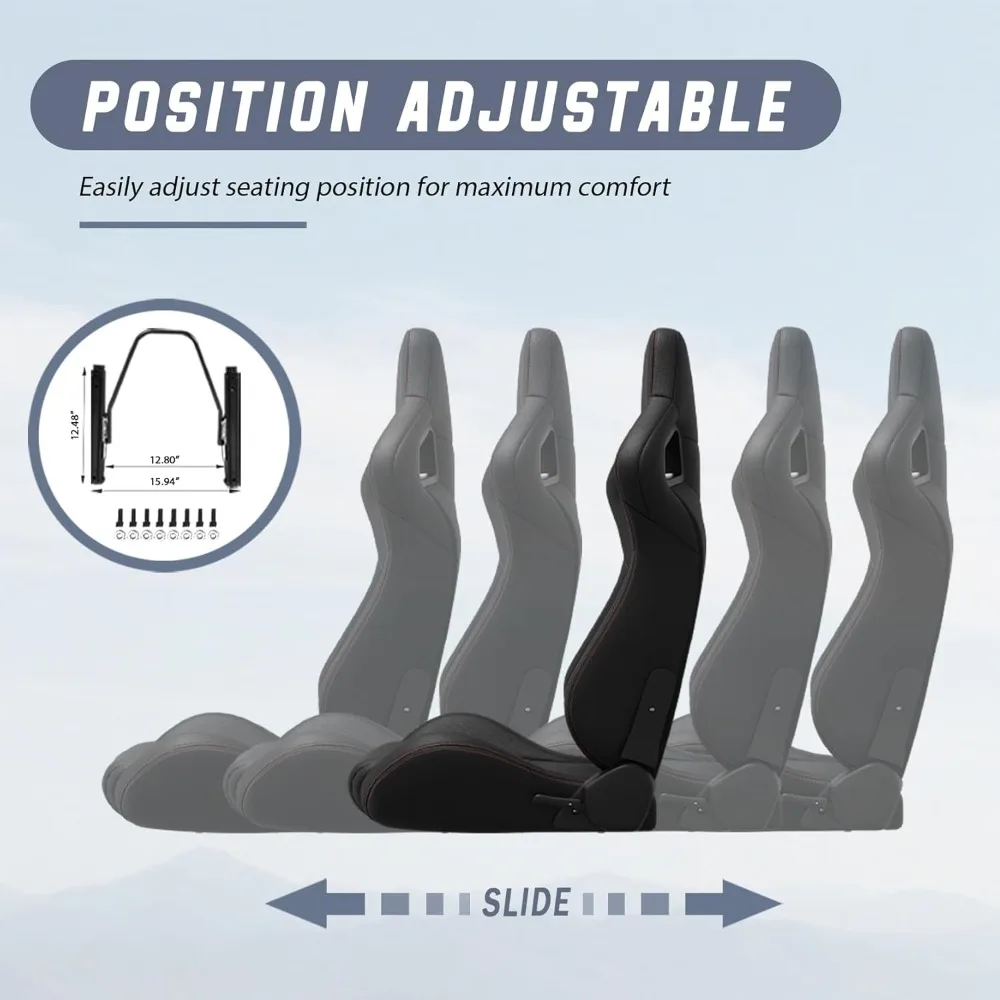 - 【NOTE】 Universal for 95% of cars. 𝙋𝙡𝙚𝙖𝙨𝙚 𝙀𝙉𝙎𝙐𝙍𝙀 𝙩𝙝𝙖𝙩 𝙮𝙤𝙪 𝘾𝙊𝙈𝙋𝘼𝙍𝙀 𝙩𝙝𝙚 𝙨𝙚𝙖𝙩 𝘿𝙄𝙈𝙀𝙉𝙎𝙄𝙊𝙉𝙎 𝙬𝙞𝙩𝙝 𝙮𝙤𝙪𝙧 𝙫𝙚𝙝𝙞𝙘𝙡𝙚'𝙨 𝙞𝙣𝙩𝙚𝙧𝙞𝙤𝙧 𝙨𝙥𝙖𝙘𝙚 𝙥𝙧𝙞𝙤𝙧 𝙩𝙤 𝙢𝙖𝙠𝙞𝙣𝙜 𝙖 𝙥𝙪𝙧𝙘𝙝𝙖𝙨𝙚. The package comes with 2 sliders but DOES NOT include mounting brackets; you need to purchase your car-specific bracket in an online store. This applies specifically to our bucket racing seat, ensuring a proper fit and optimal performance in your vehicle.