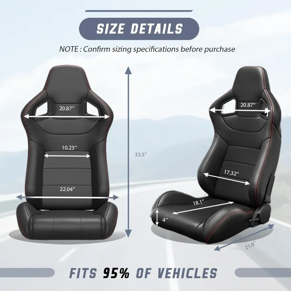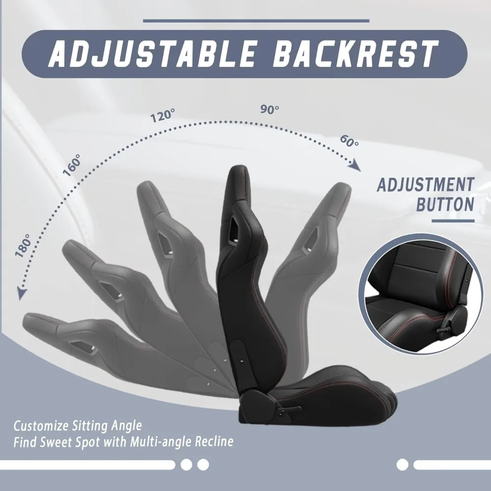- 【High-quality Material Selection】Our all-new reclining racing seats are carefully crafted with thick, high-quality leatherette material that is not only waterproof but also easy to clean. Designed to enhance the appearance, comfort, and stability of your seats, these seats are a practical choice.