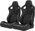 2 Pieces Universal Racing Seats with Dual Lock Sliders, 1 Pair PVC Leather Bucket Seats for Cars (Black)