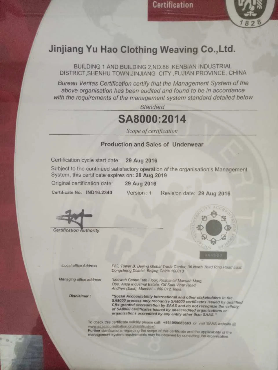 BSCI, SA800, Oak-Tex 100 Certificate, Sedex Audit
