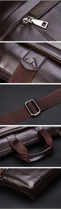 2024 New Luxury Brand Man Handbag Leather Laptop Briefcase Business A4 Document Bags For IPAD Office Male Vintage Shoulder Bag