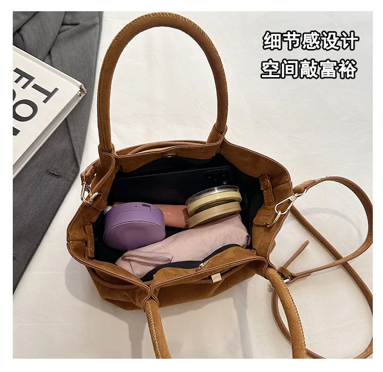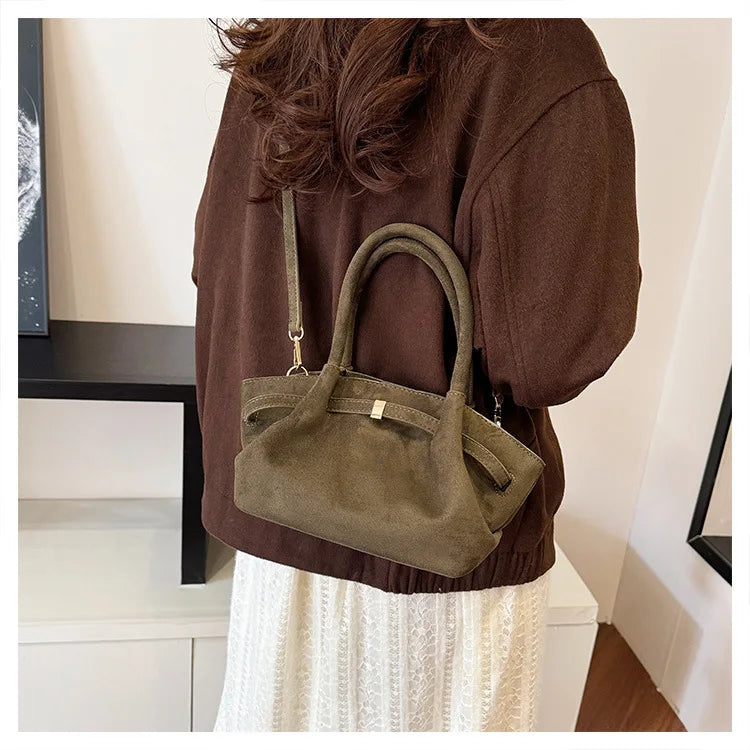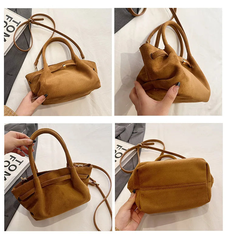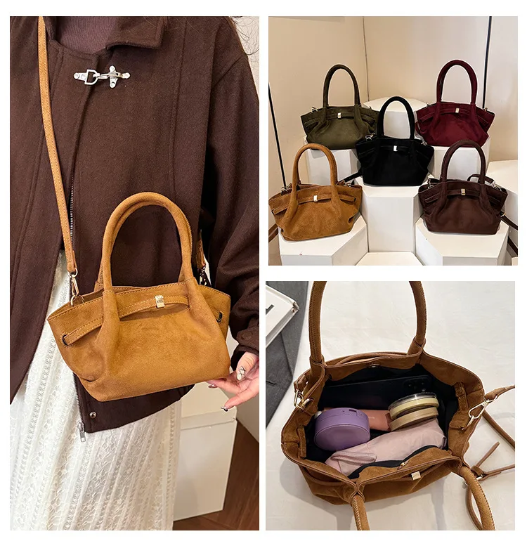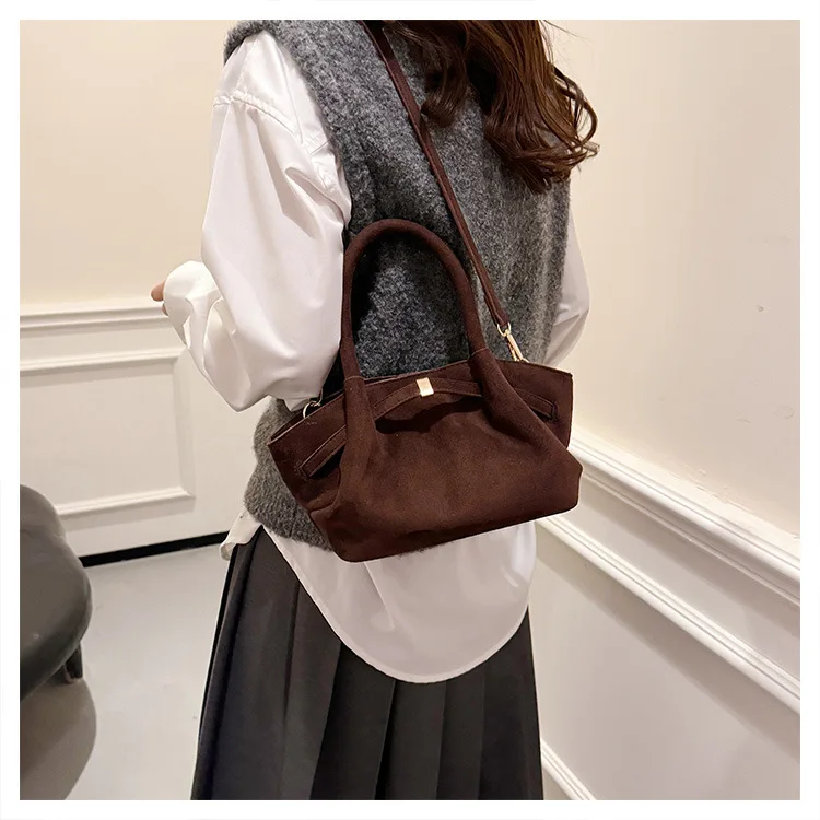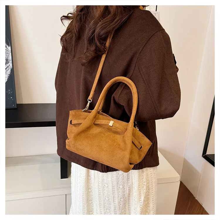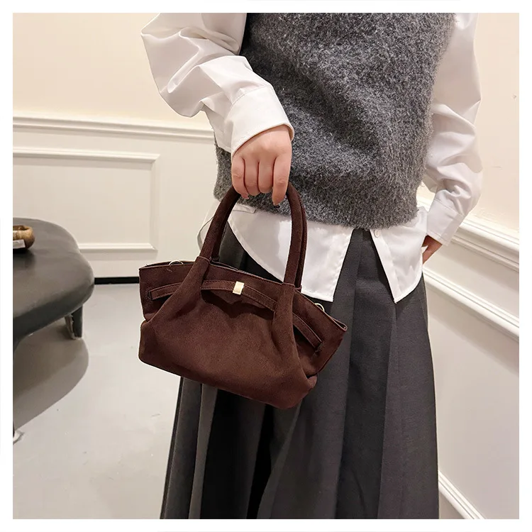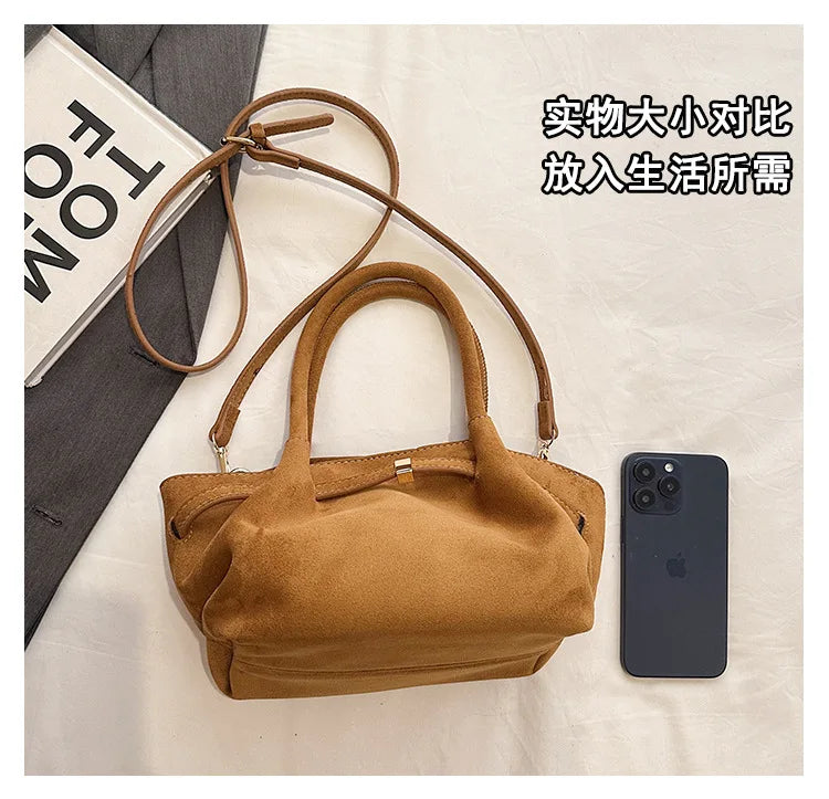 2024 New Suede Leather Underarm Shoulder Bag For Women Fashion Mini Dumpling Handbag Design Commuter Crossbody Phone Tote Bags