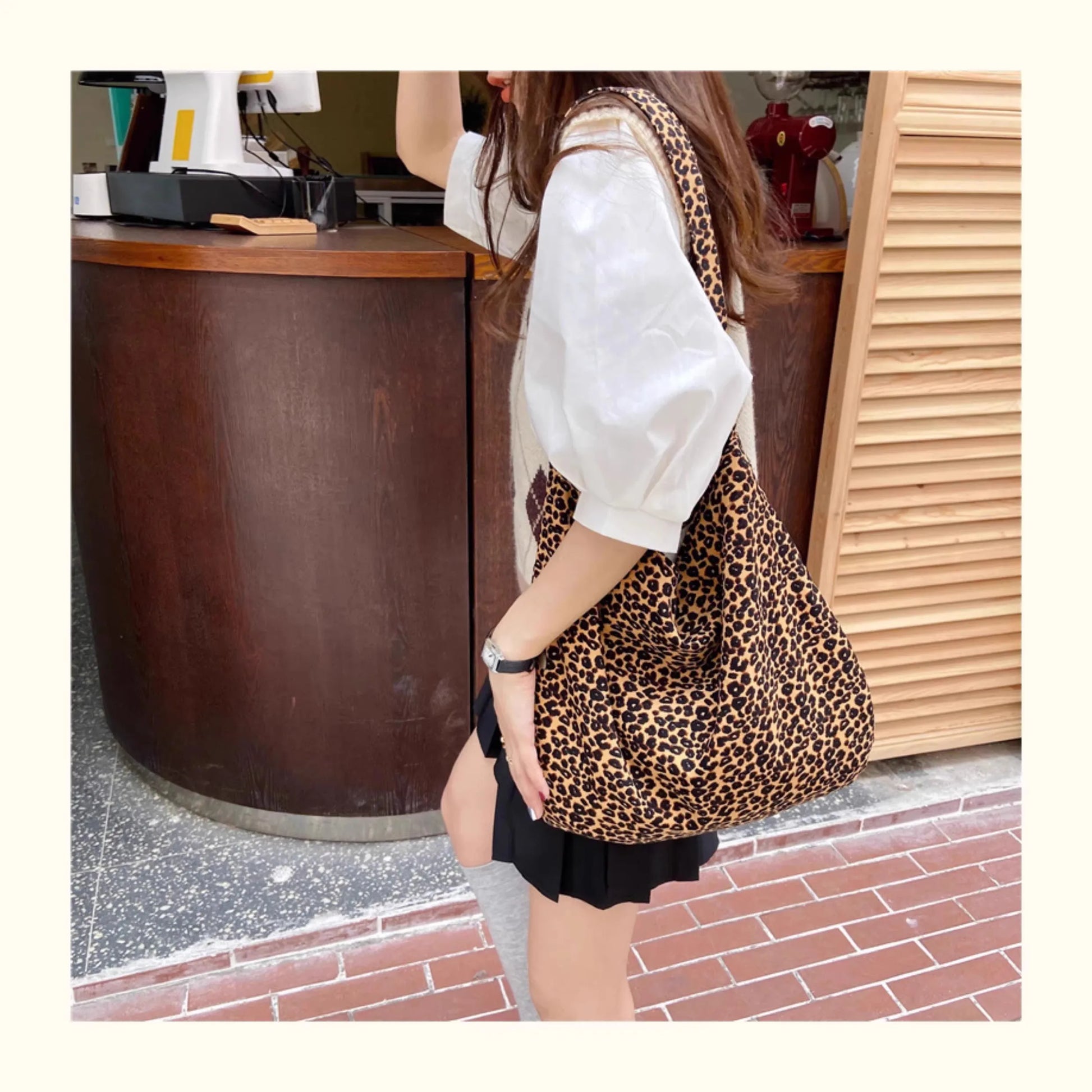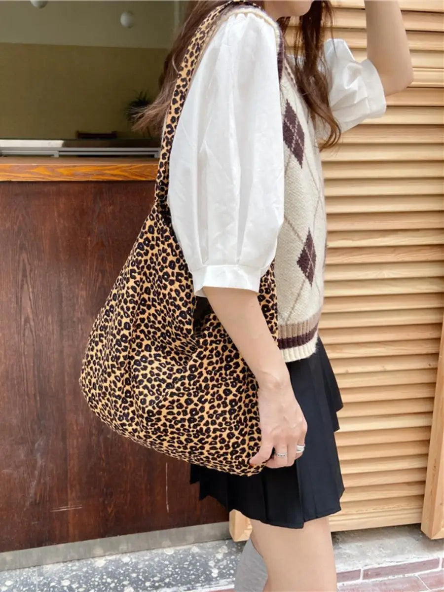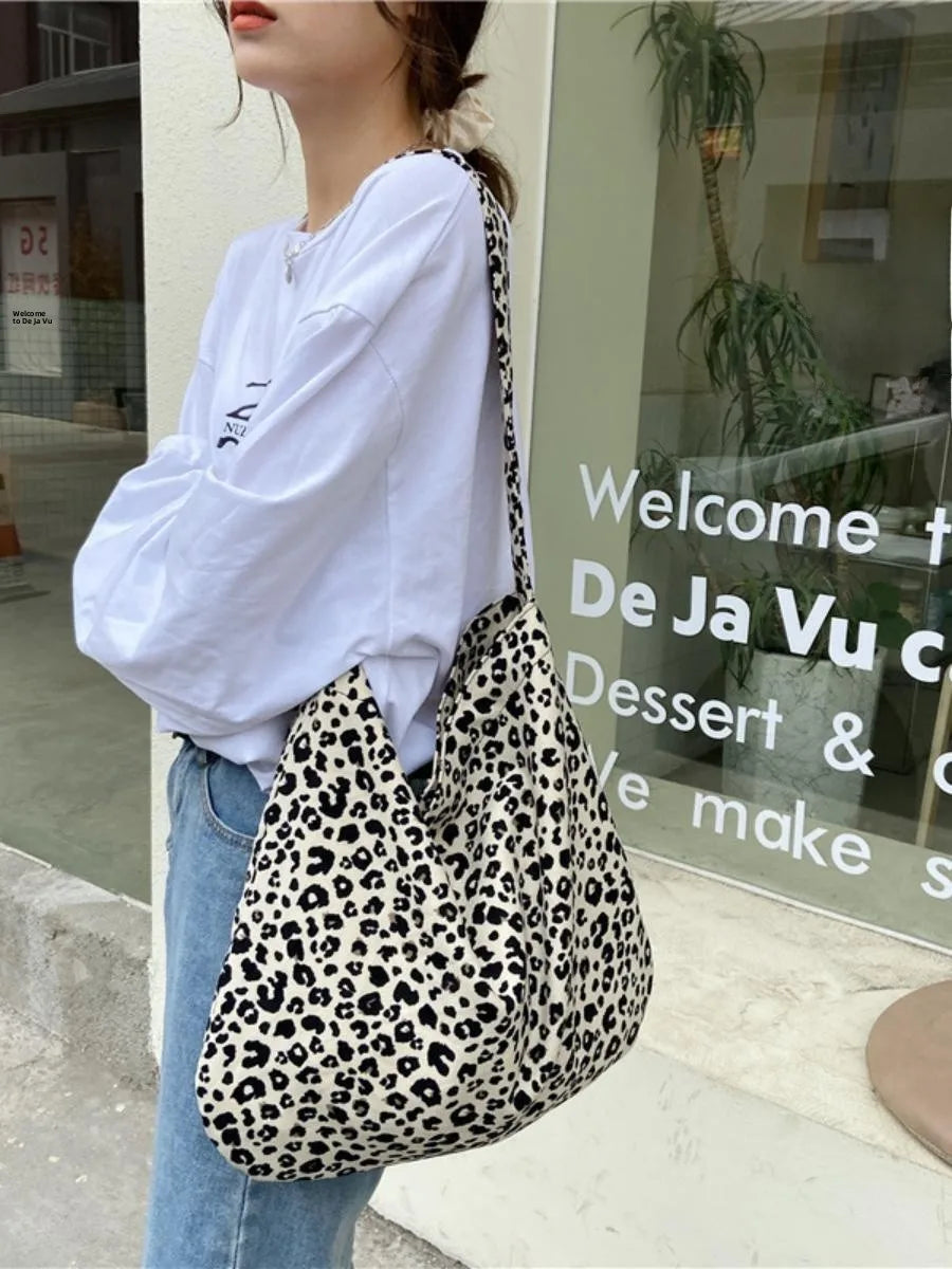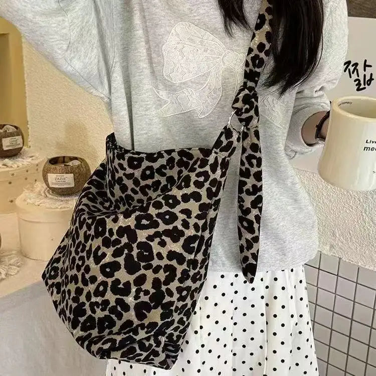 2025 Hole Patterned Canvas op Bag Single oulder Bag Student Tote Bag Leopard Print Versatile Casual Faion Bag