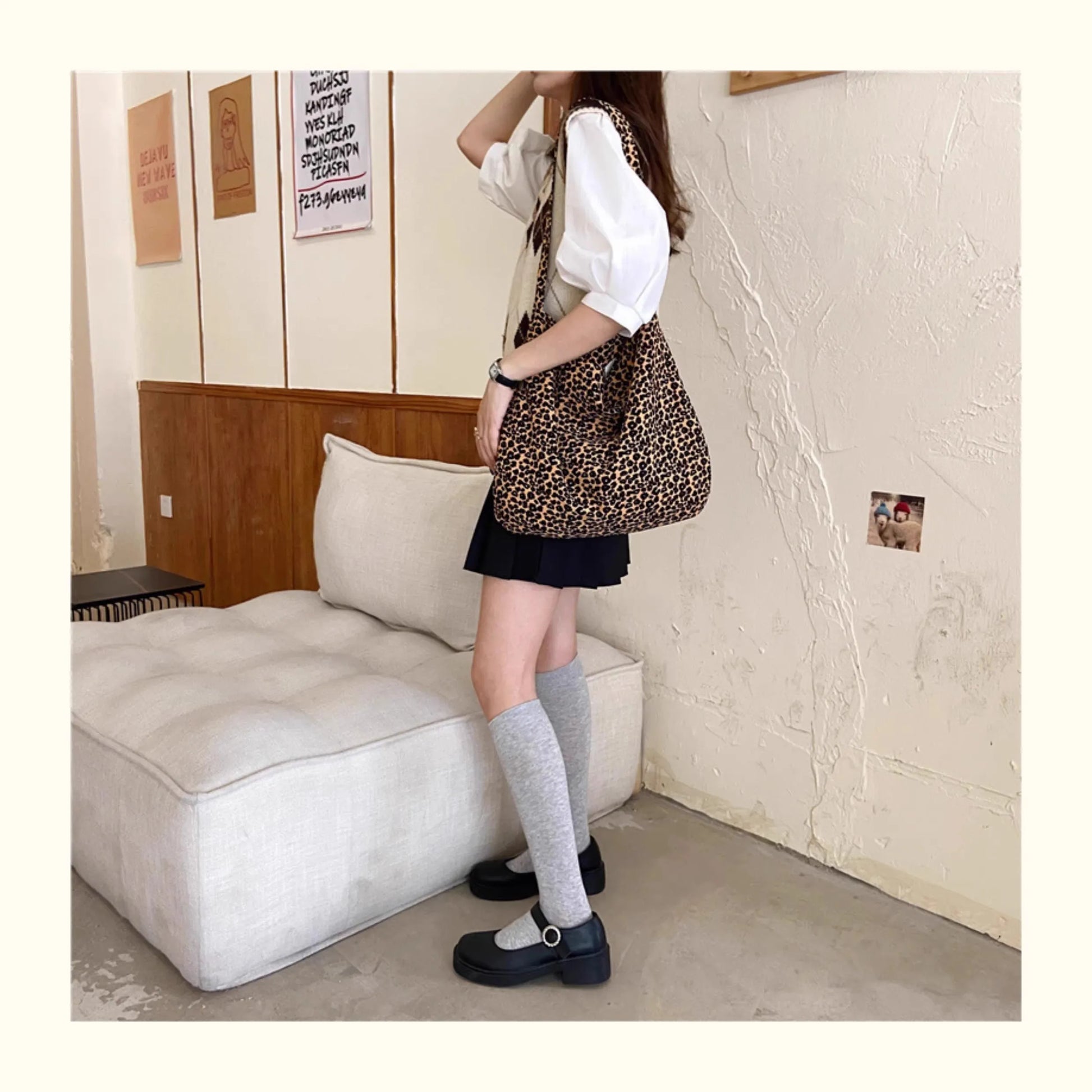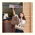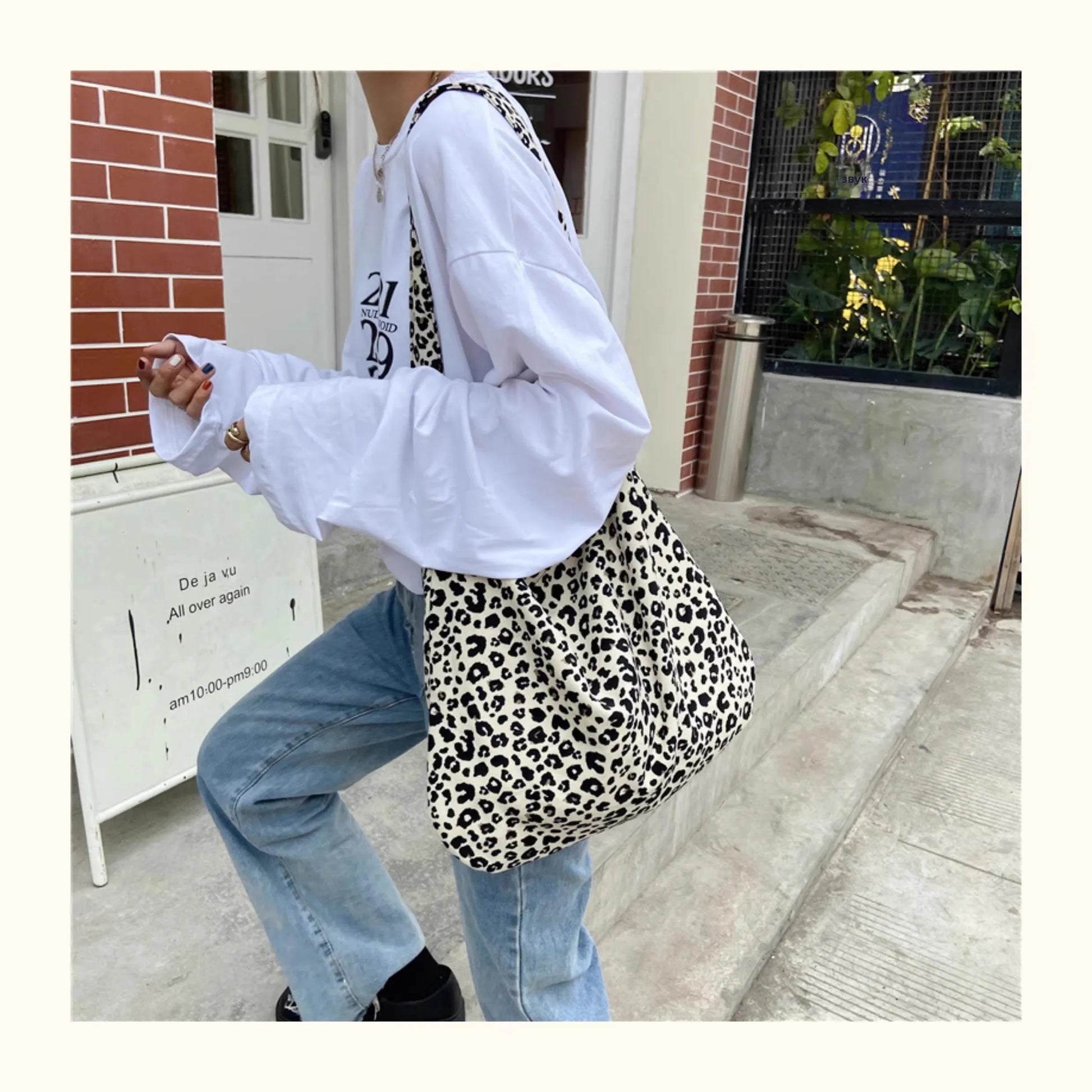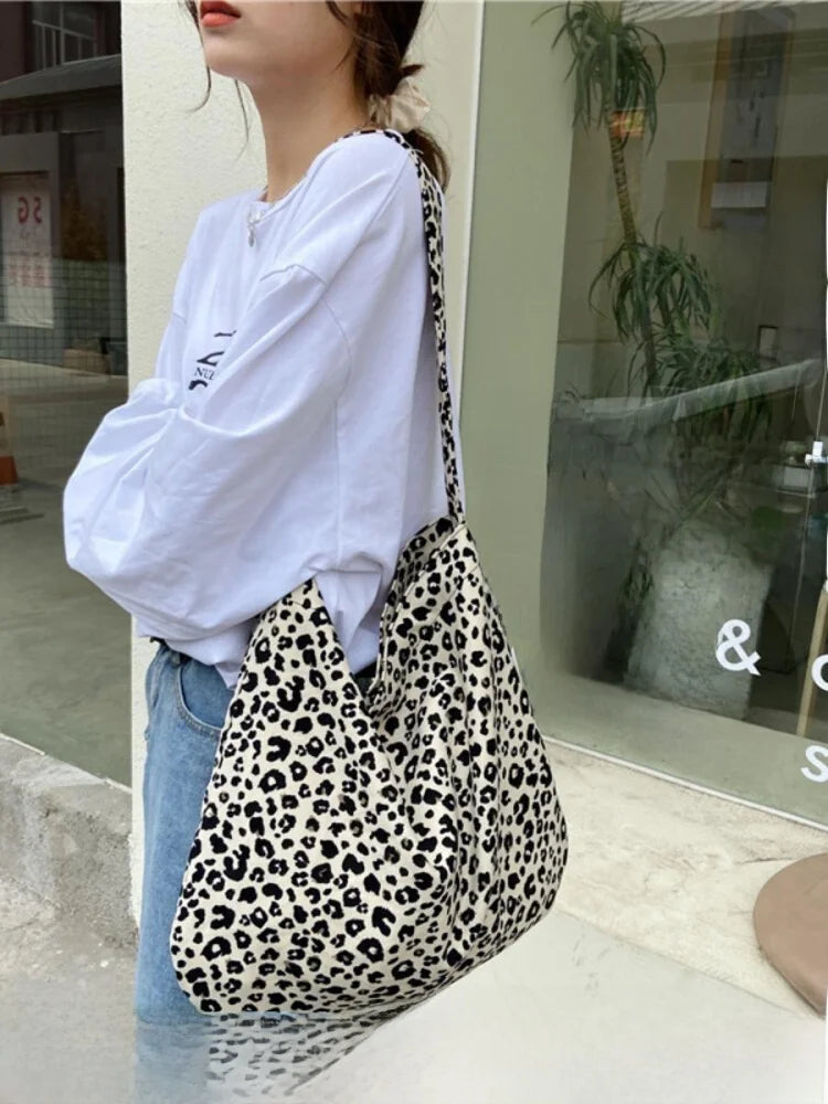 2025 Hole Patterned Canvas op Bag Single oulder Bag Student Tote Bag Leopard Print Versatile Casual Faion Bag